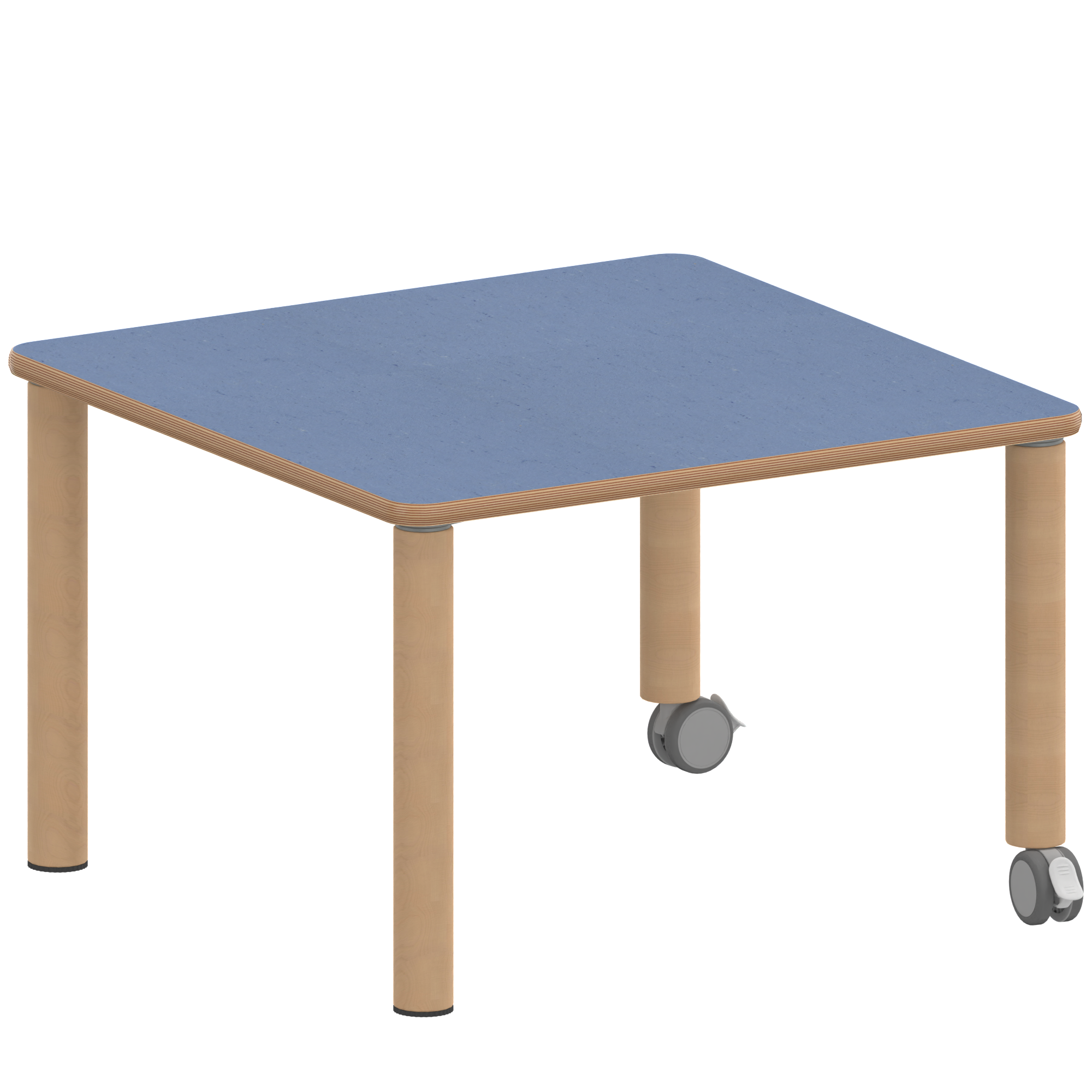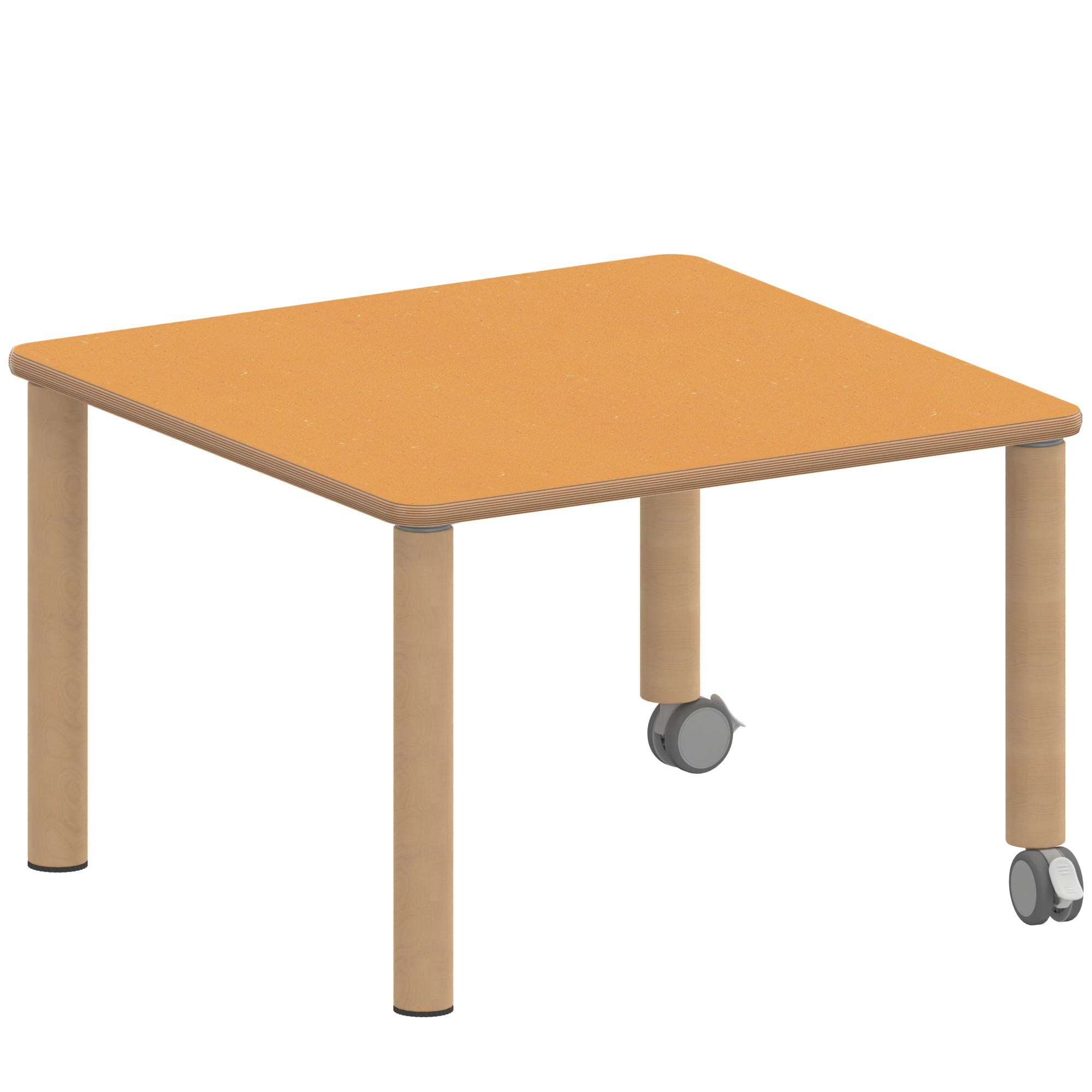 Quadrattische, Maße B/T: 80x80 bzw. 60x60 cm, Höhen 25…76 cm, Massivholzbeine Ø 60 mm, Fußvariante: fahrbar