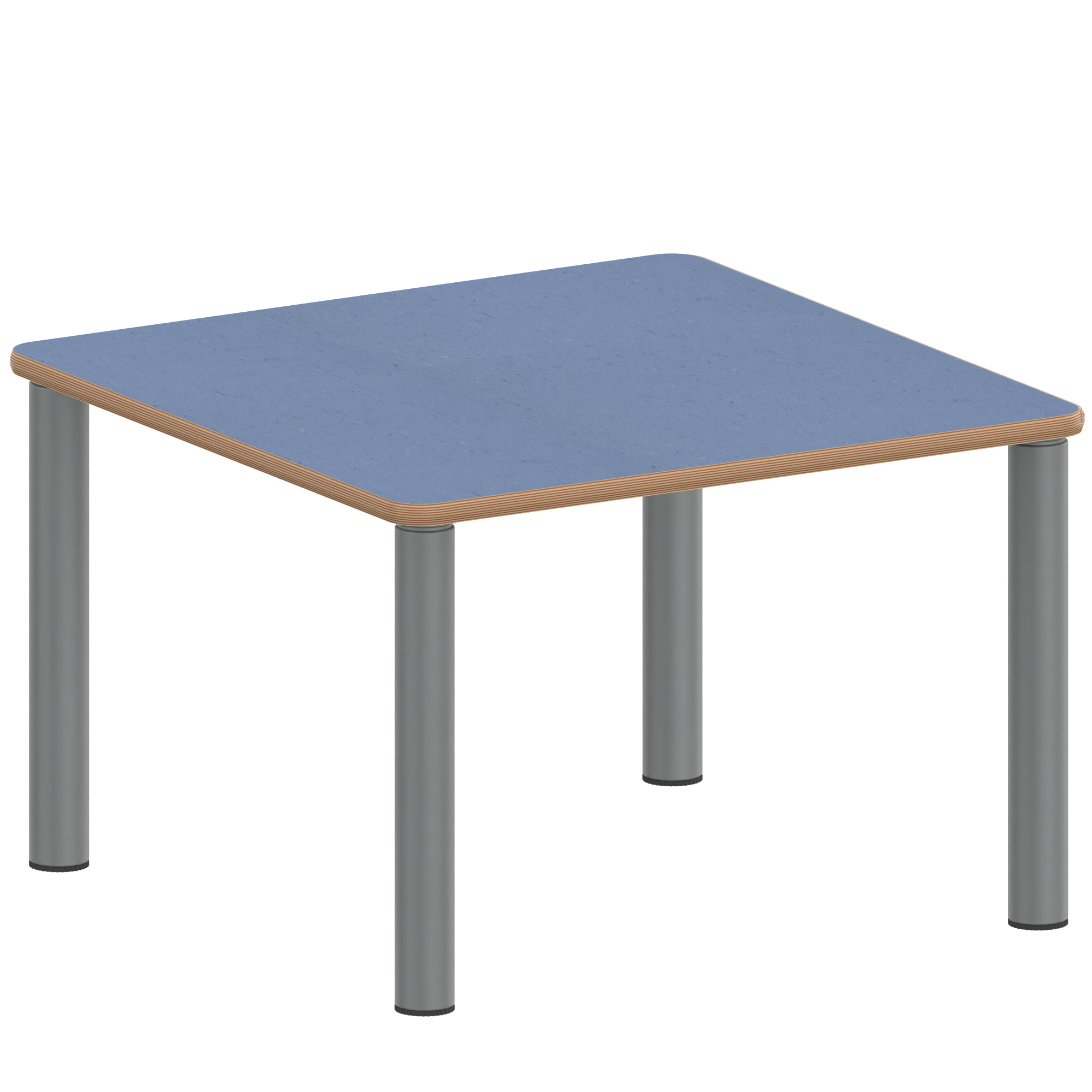 Quadrattische, Maße B/T: 80x80 bzw. 60x60 cm, Höhen 25…76 cm, Stahlrohrbeine Ø 60 mm, Fußvariante: Stellfuß