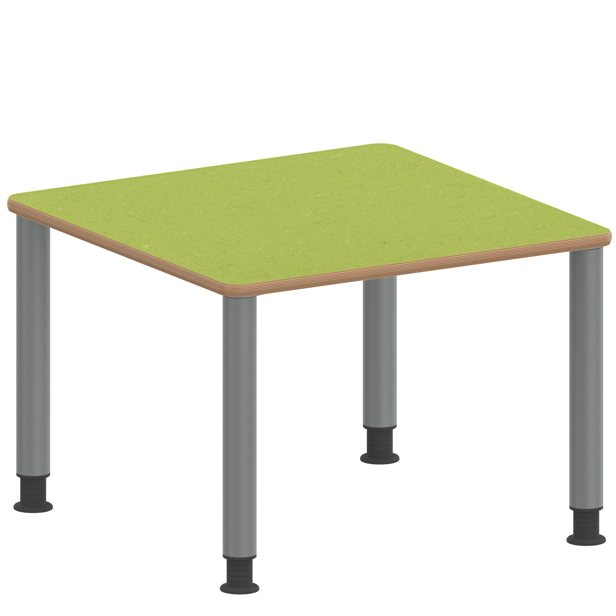 Quadrattische, Maße B/T: 80x80 bzw. 60x60 cm, Höhen 41…76 cm, Stahlrohrbeine Ø 60 mm, Fußvariante: höhenverstellbar