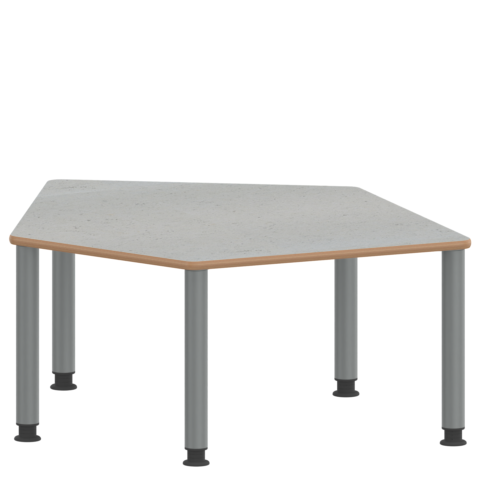Fünfecktisch-klein, Stellfläche B/T: 121x110 cm, Höhen 41…76 cm, Stahlrohrbeine Ø 60 mm, Fußvariante: höhenverstellbar