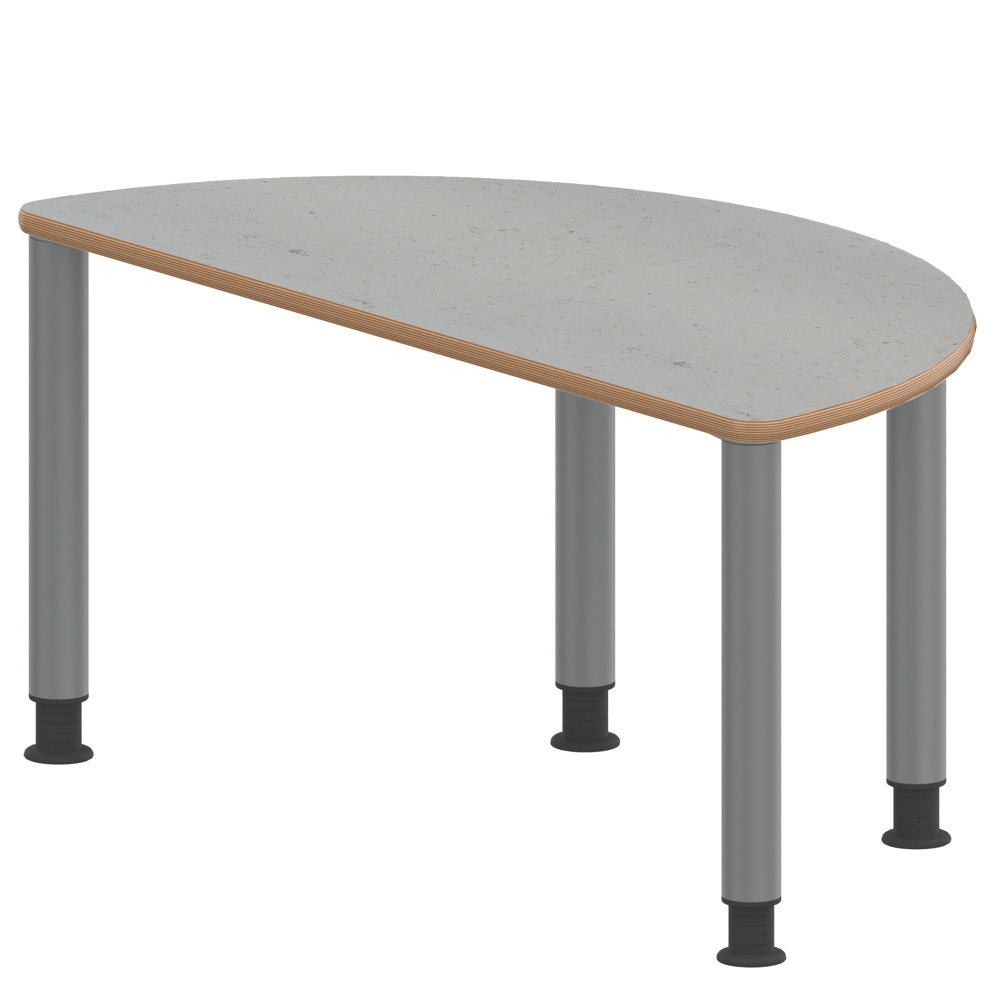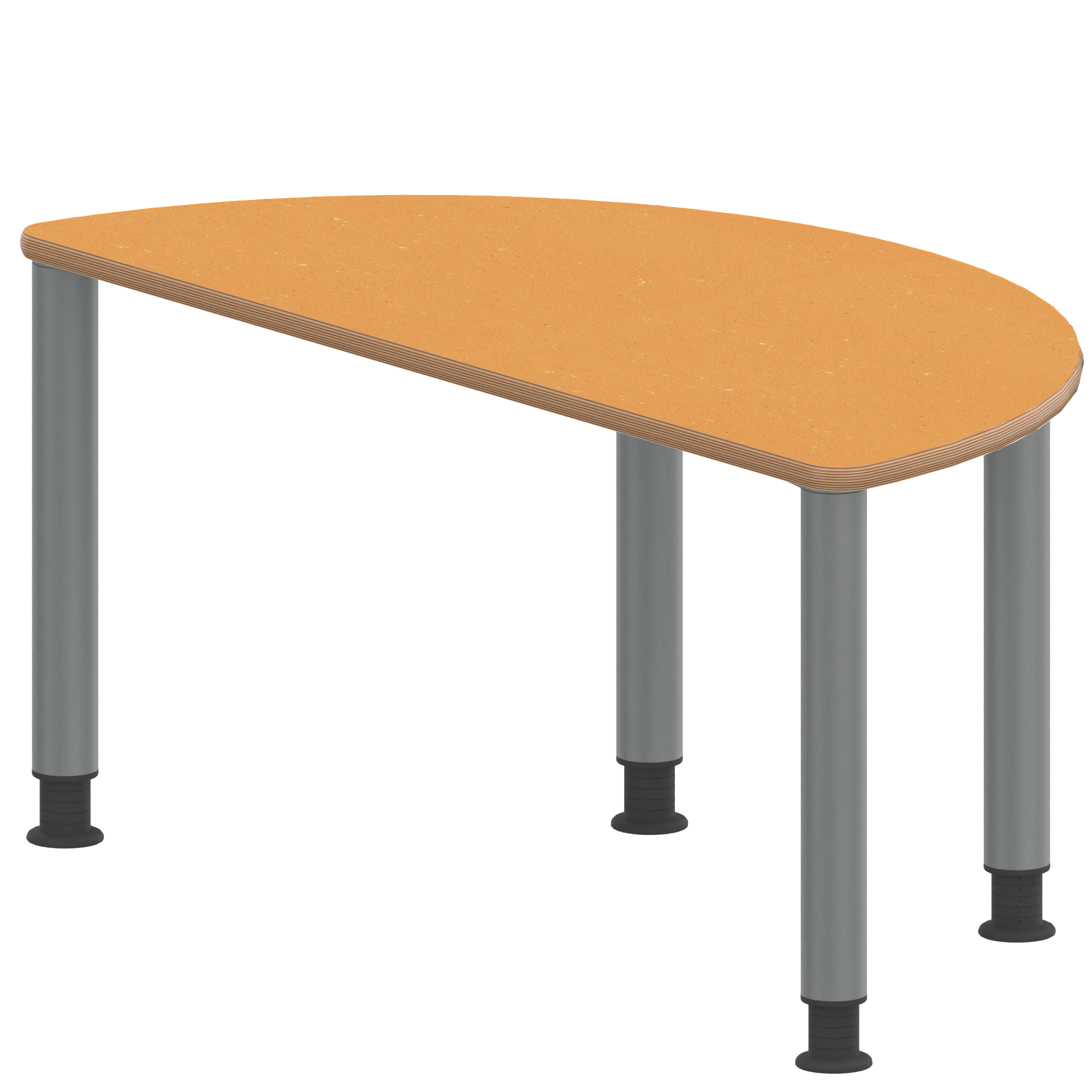 Halbrundtische, Stellfläche B/T: 120x60 cm, Höhen 41…76 cm, Stahlrohrbeine Ø 60 mm, Fußvariante: höhenverstellbar