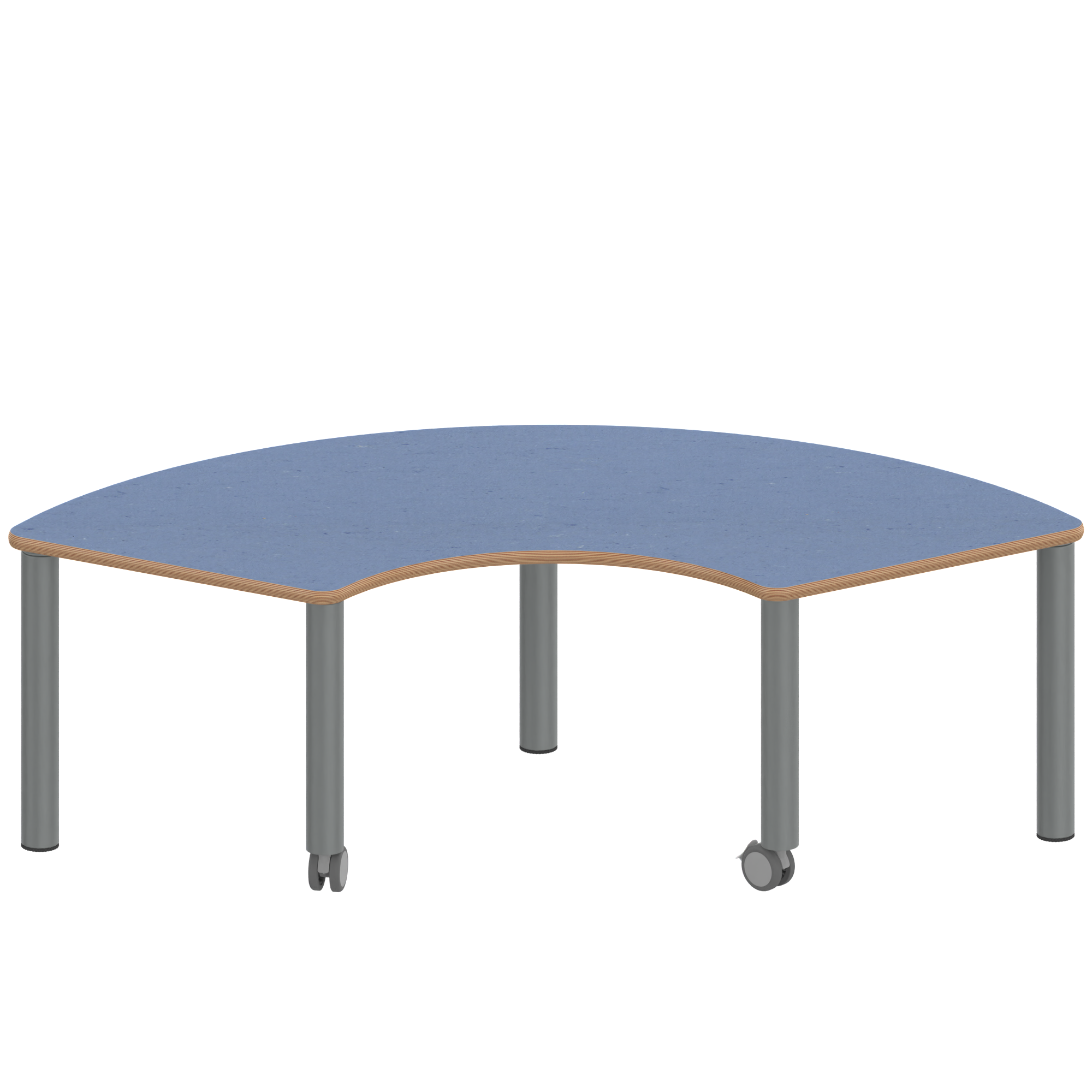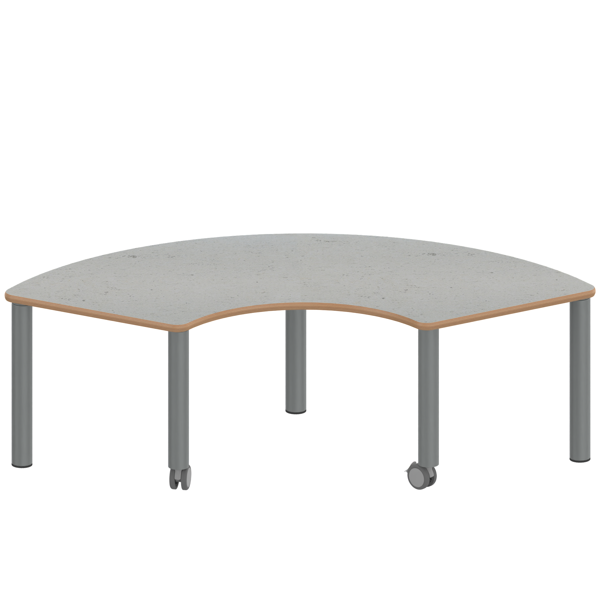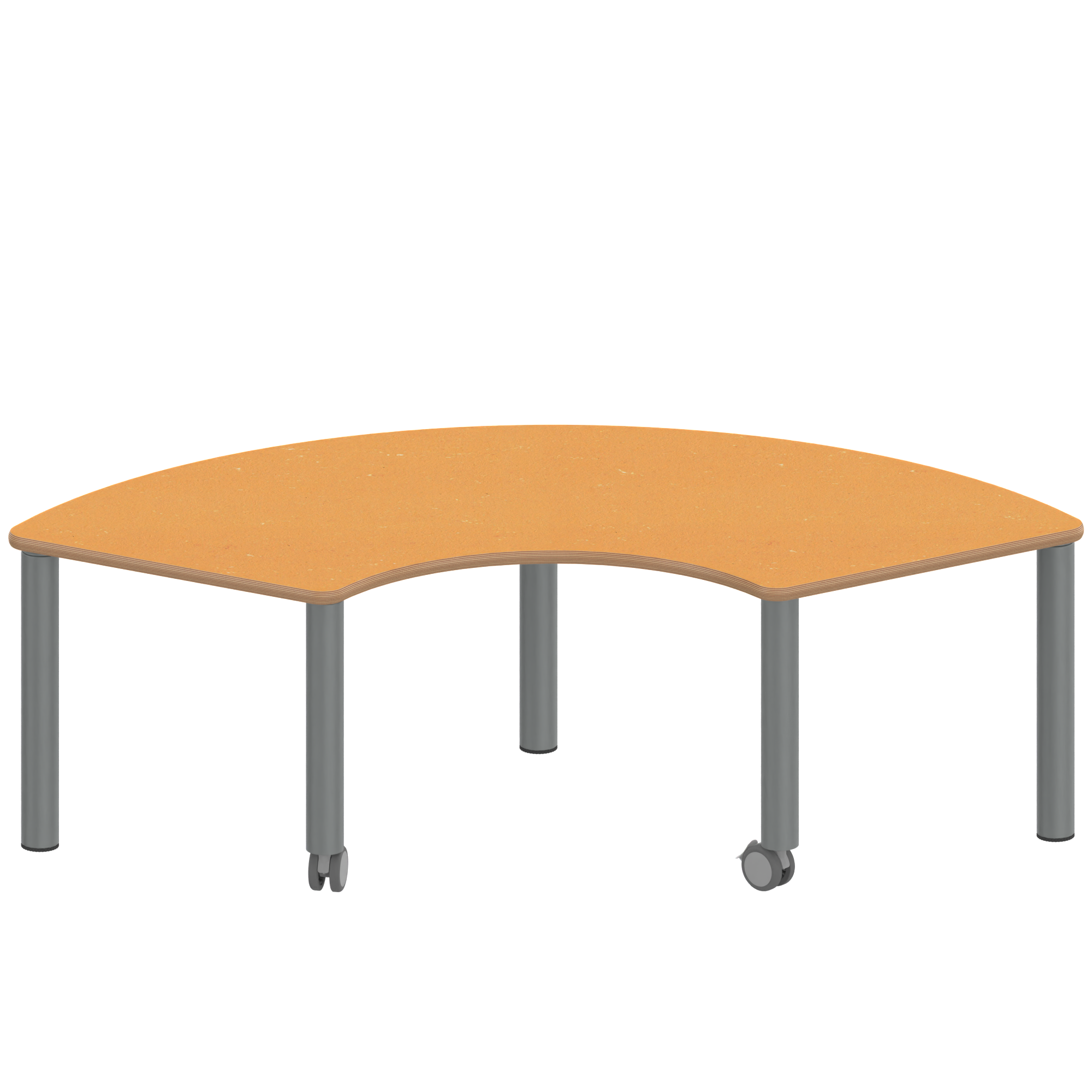 Drittelkreistische, Stellfläche B/T: 173x80 cm, Höhen 25…76 cm, Stahlrohrbeine Ø 60 mm, Fußvariante: fahrbar