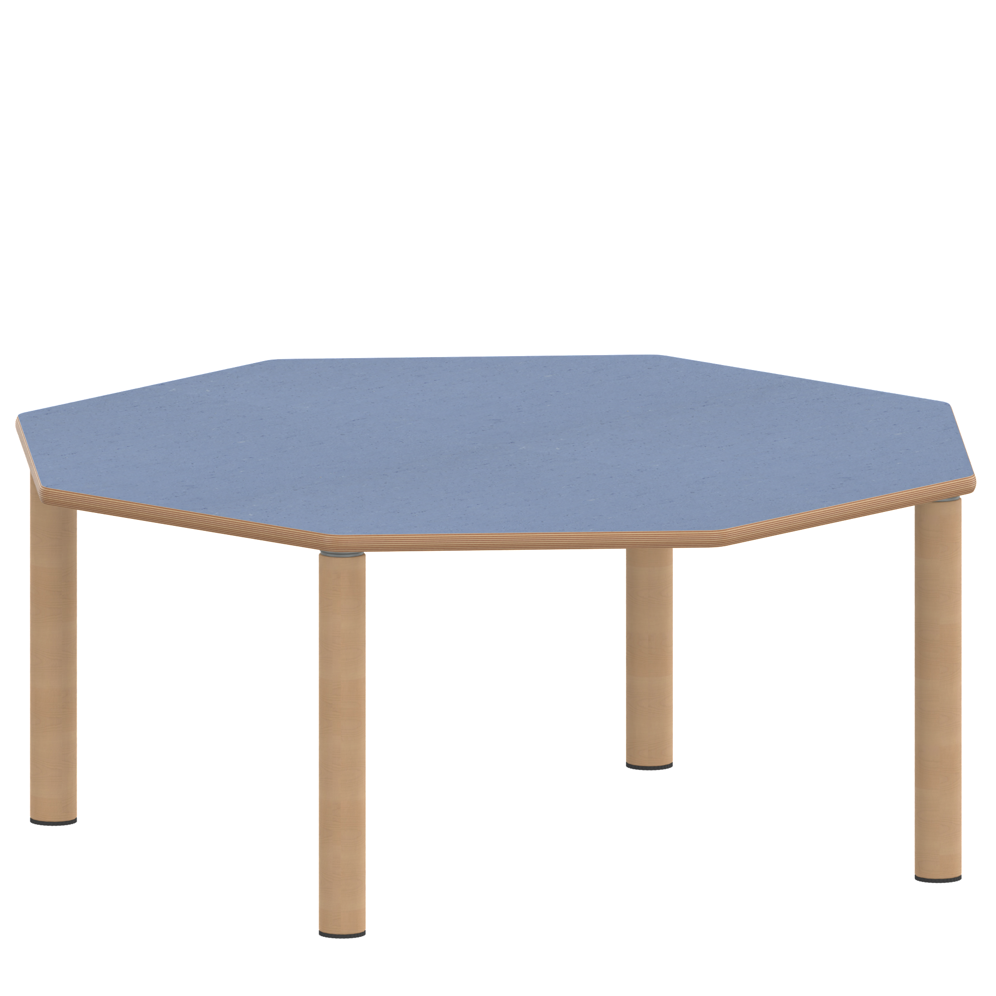 Achtecktische, Plattenmaß B/T: 120x120 cm, Höhen 25…76 cm, Massivholzbeine Ø 60 mm, Fußvariante: Stellfuß