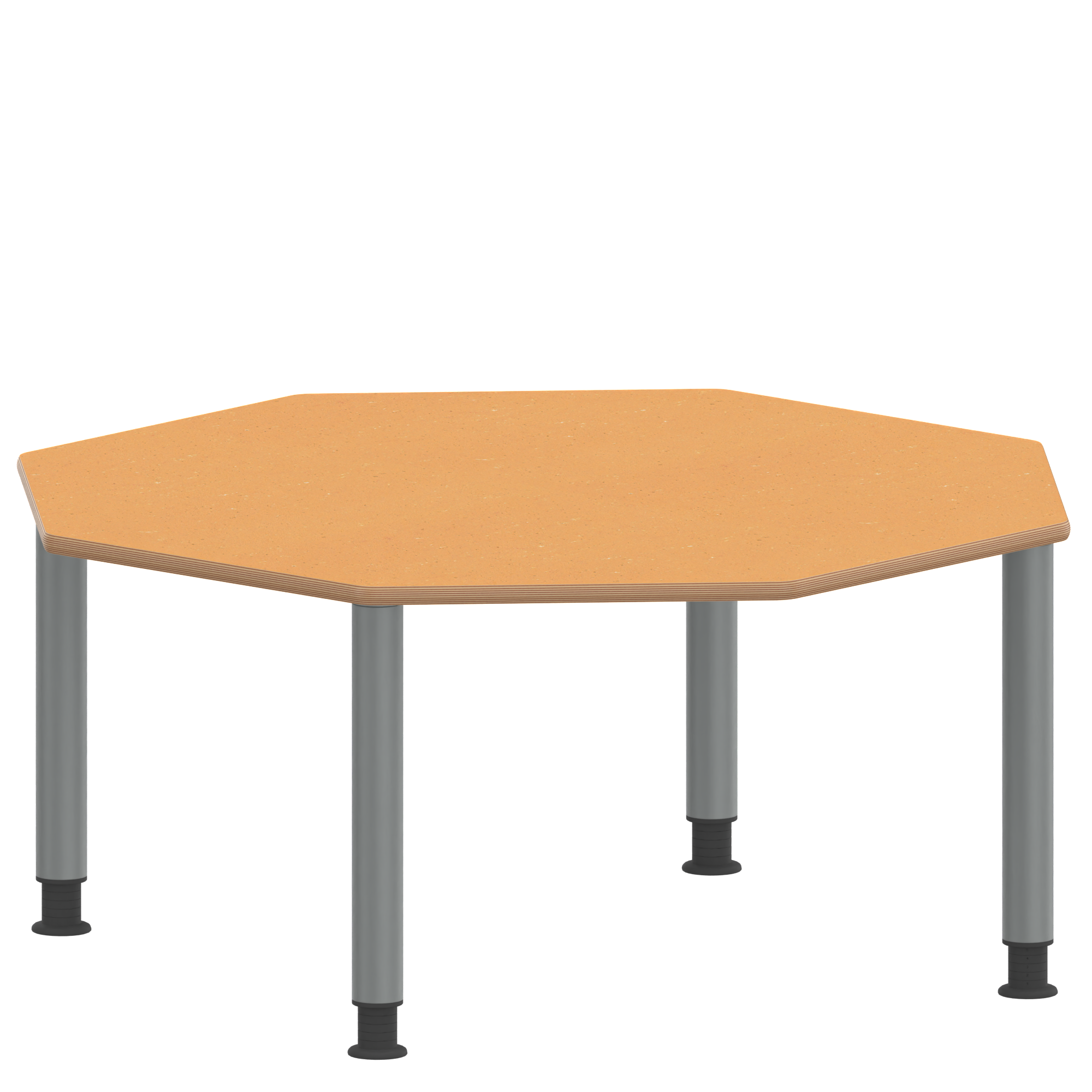 Achtecktische, Plattenmaß B/T: 120x120 cm, Höhen 41…76 cm, Stahlrohrbeine Ø 60 mm, Fußvariante: höhenverstellbar