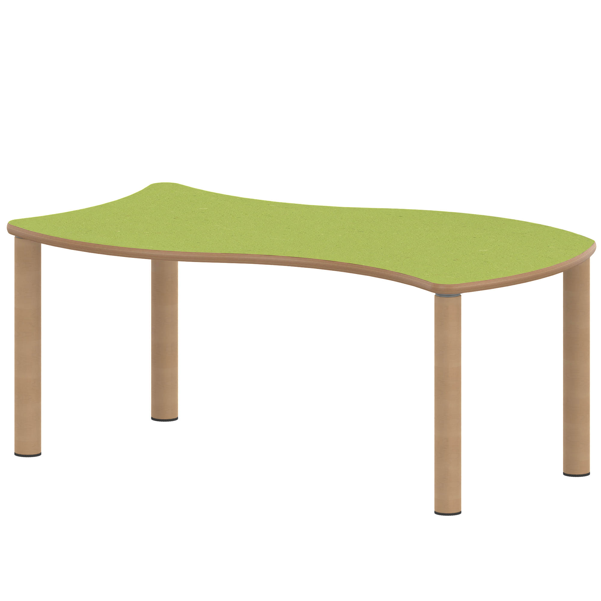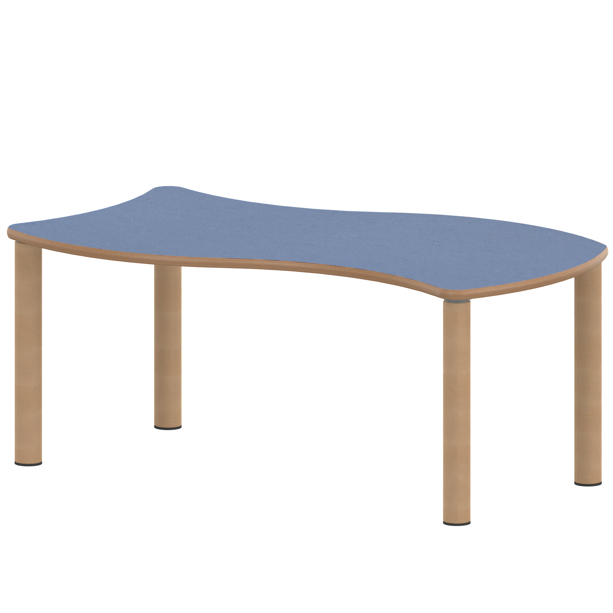 Rechteck-Wellentische, Stellfläche B/T: 126,7x76 cm, Höhen 25…76 cm, Massivholzbeine Ø 60 mm, Fußvariante: Stellfuß