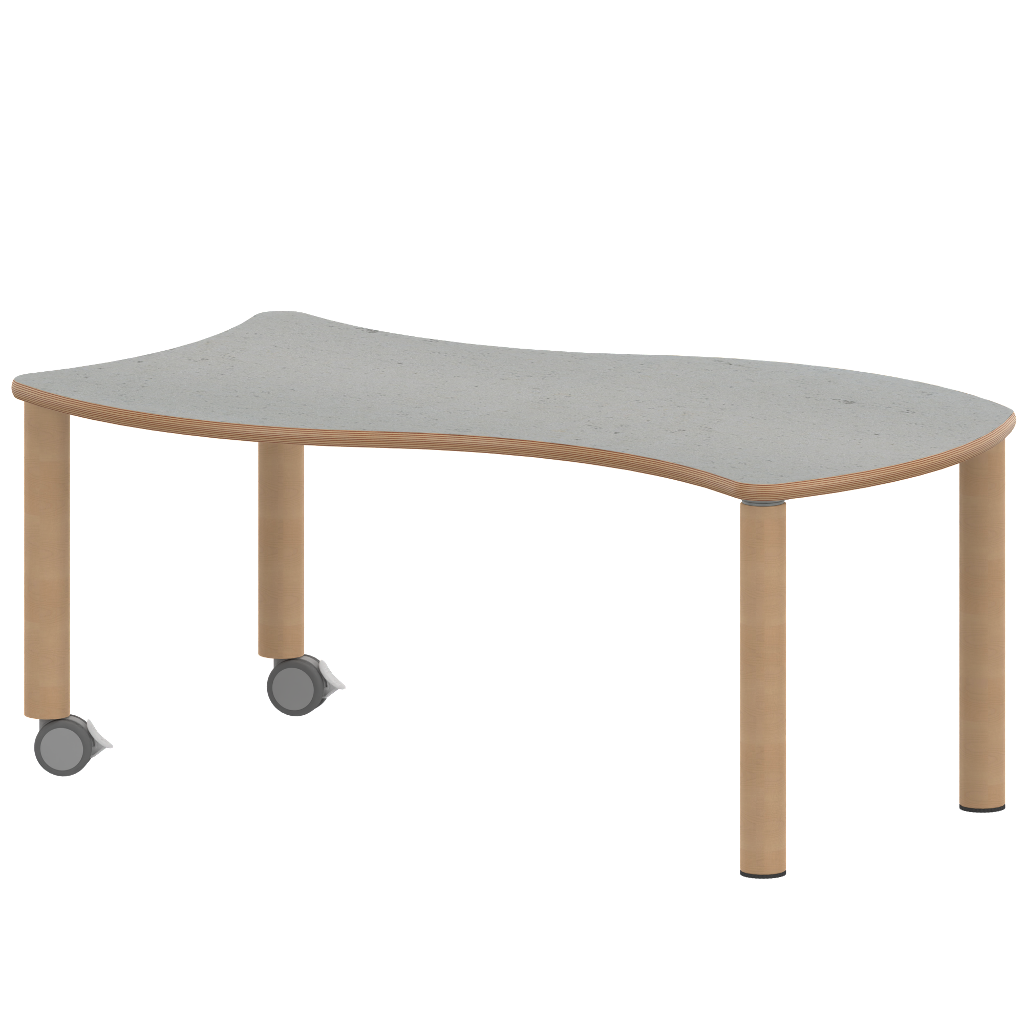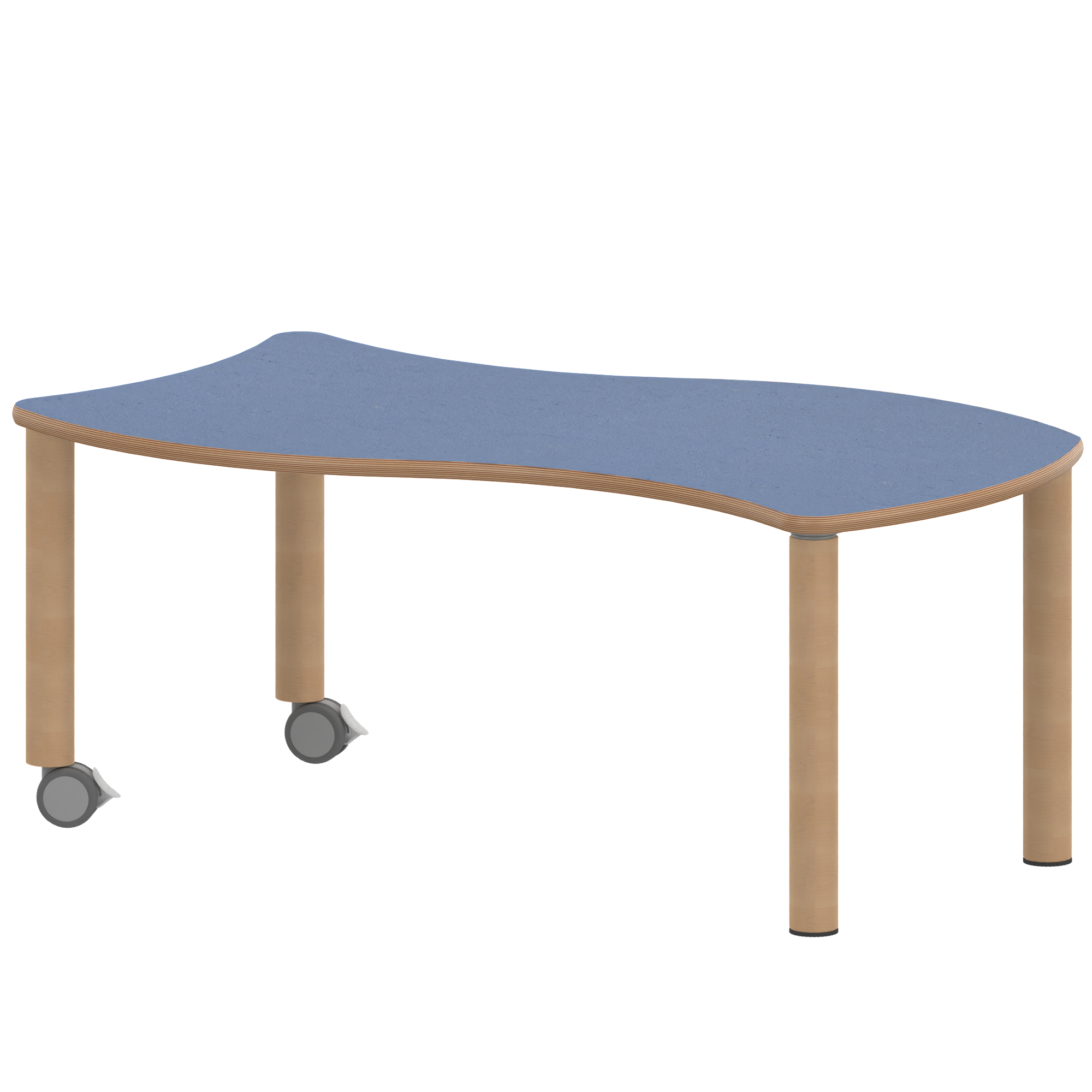 Rechteck-Wellentische, Stellfläche B/T: 126,7x76 cm, Höhen 25…76 cm, Massivholzbeine Ø 60 mm, Fußvariante: fahrbar