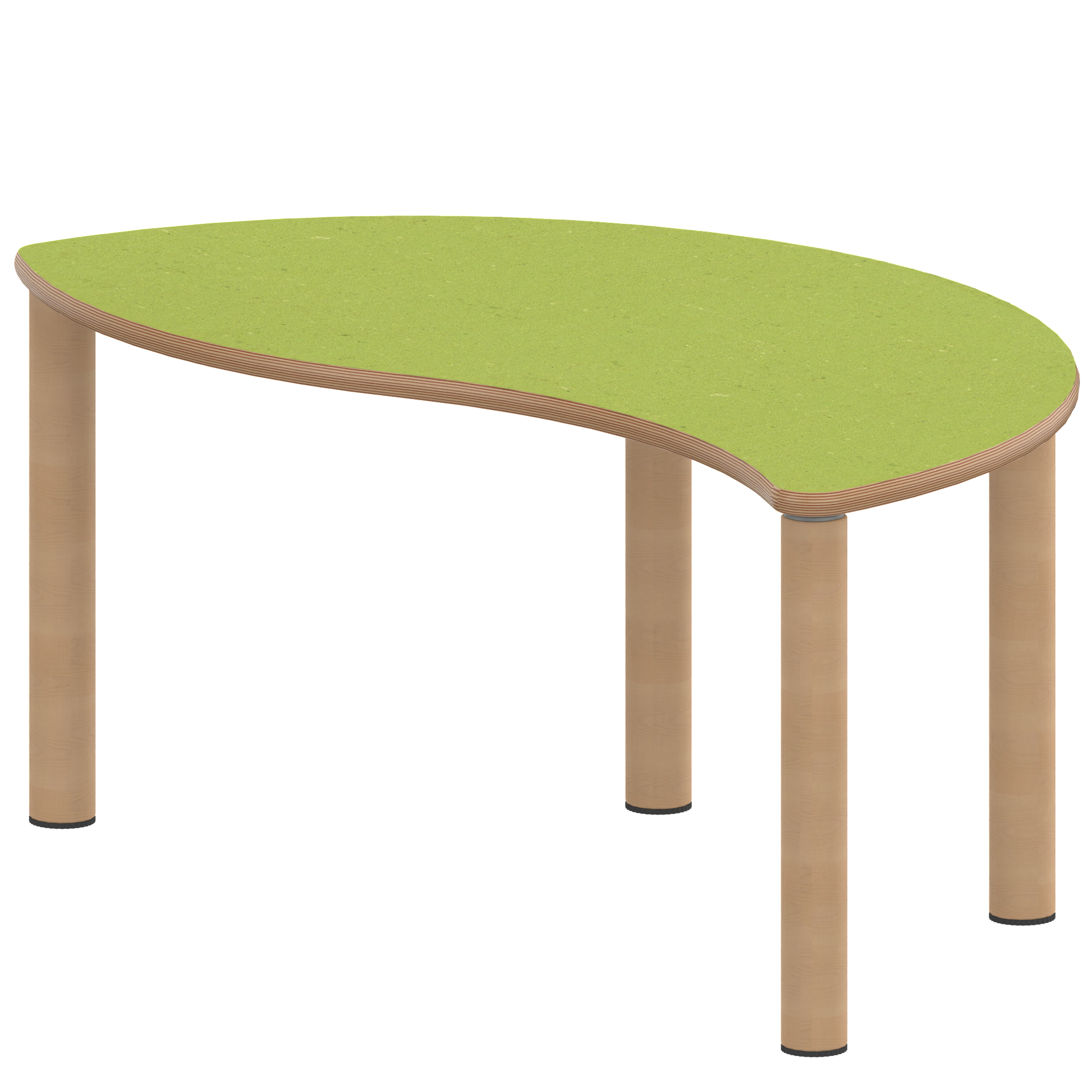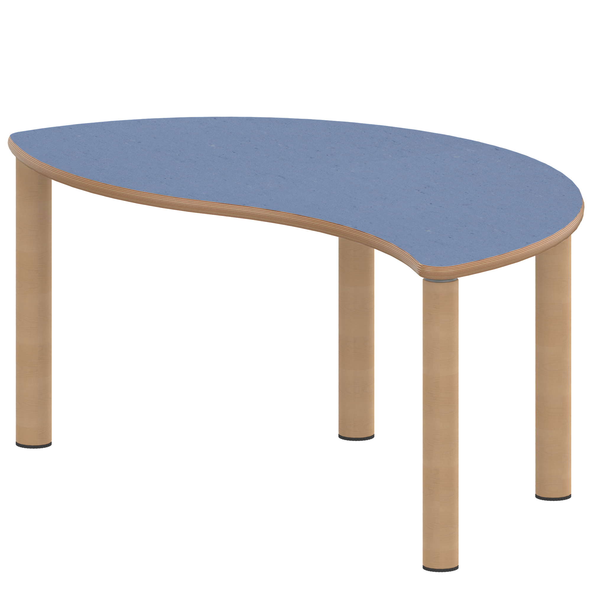 Halbrund-Wellentische, Stellfläche B/T: 120x60 cm, Höhen 25…76 cm, Massivholzbeine Ø 60 mm, Fußvariante: Stellfuß