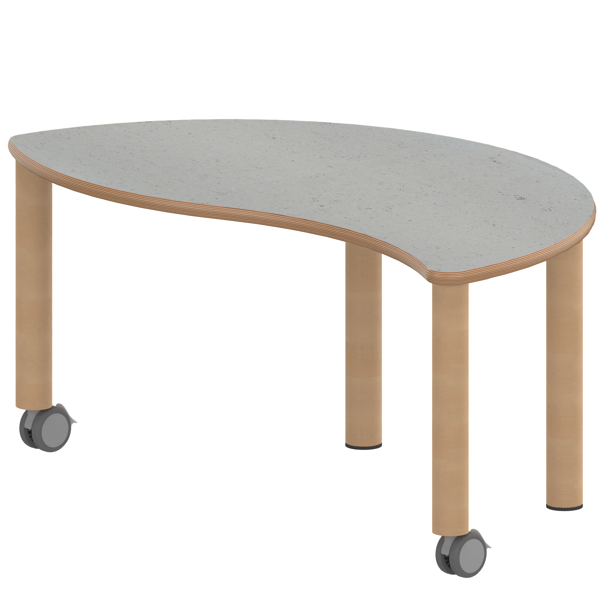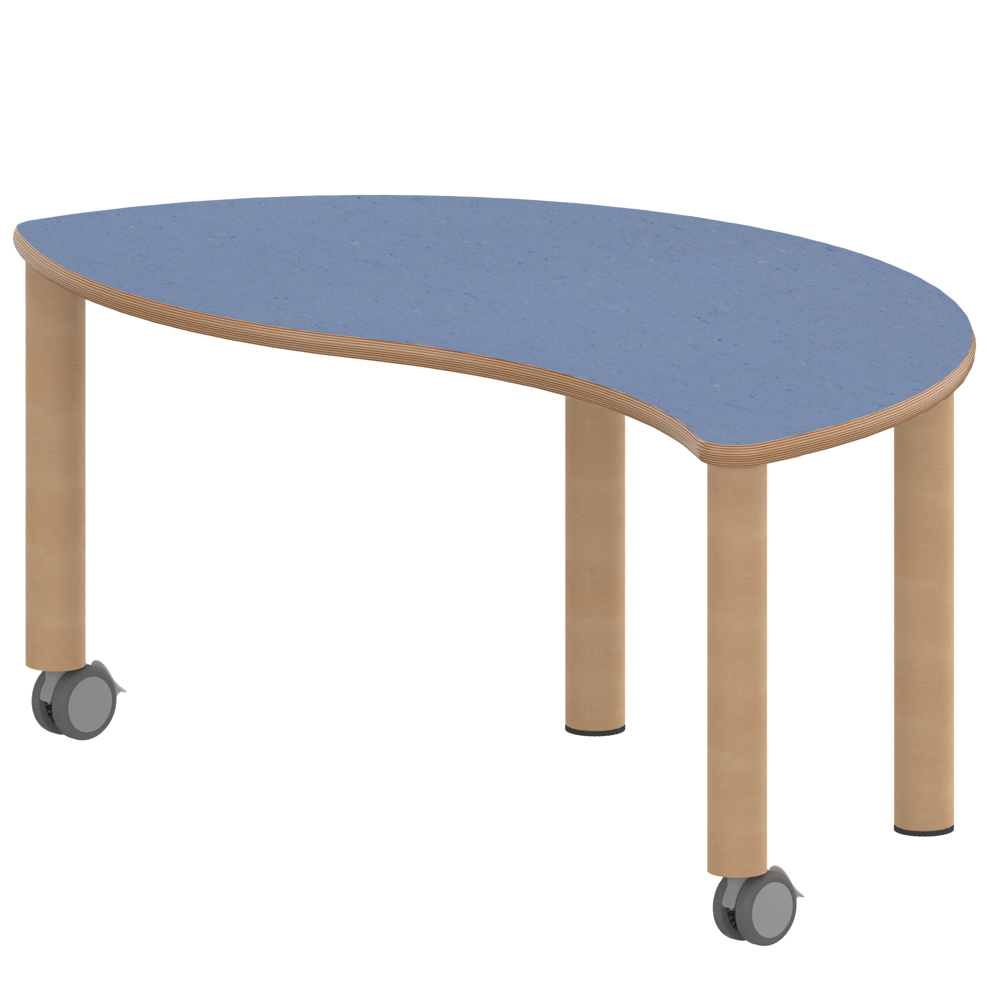 Halbrund-Wellentische, Stellfläche B/T: 120x60 cm, Höhen 25…76 cm, Massivholzbeine Ø 60 mm, Fußvariante: fahrbar