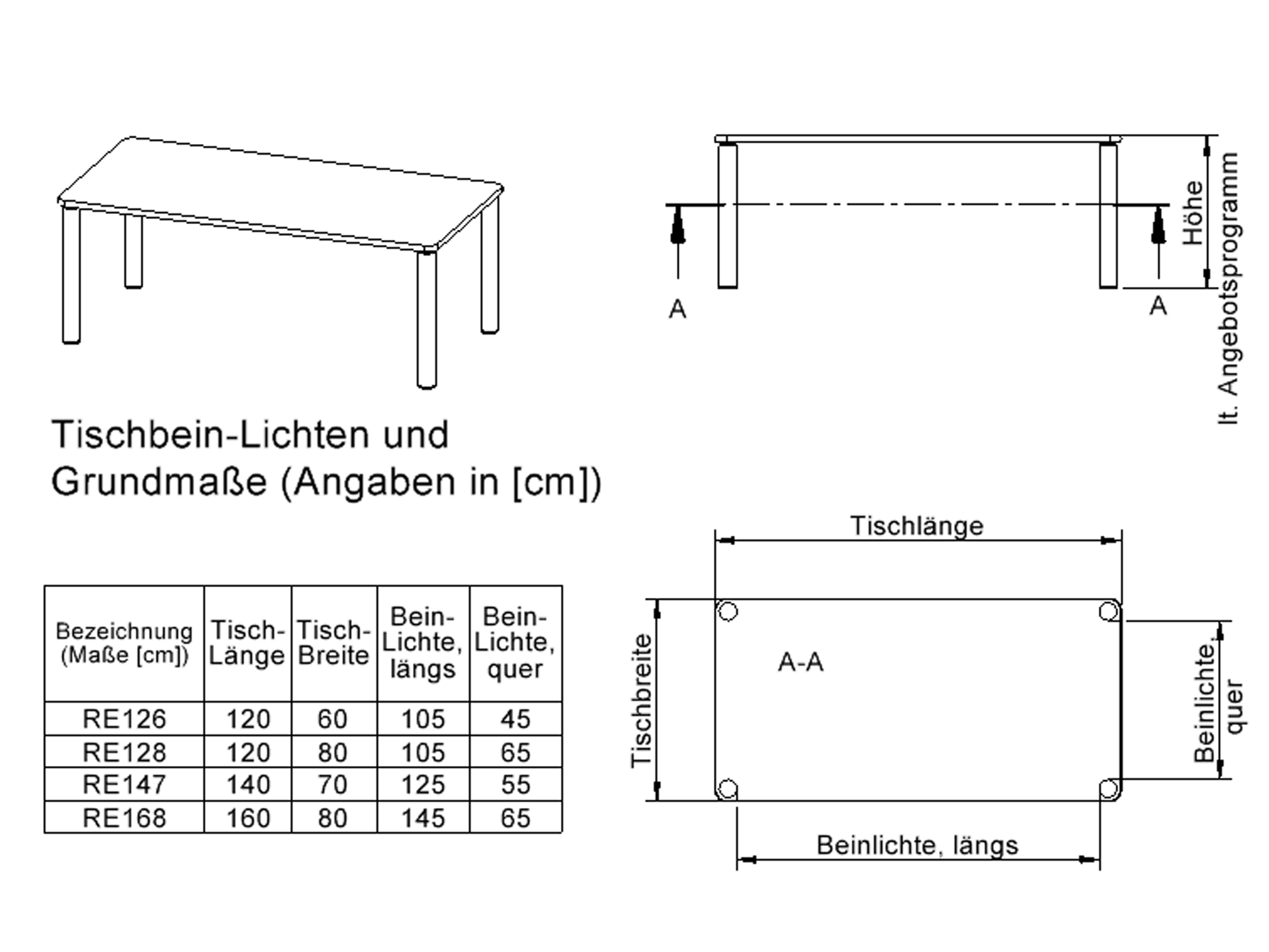 • rechteckige Tischplatte, 4 verschiedene Größen