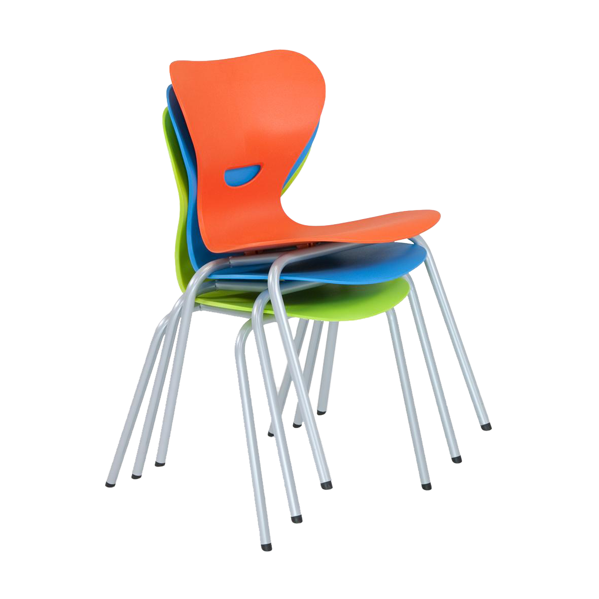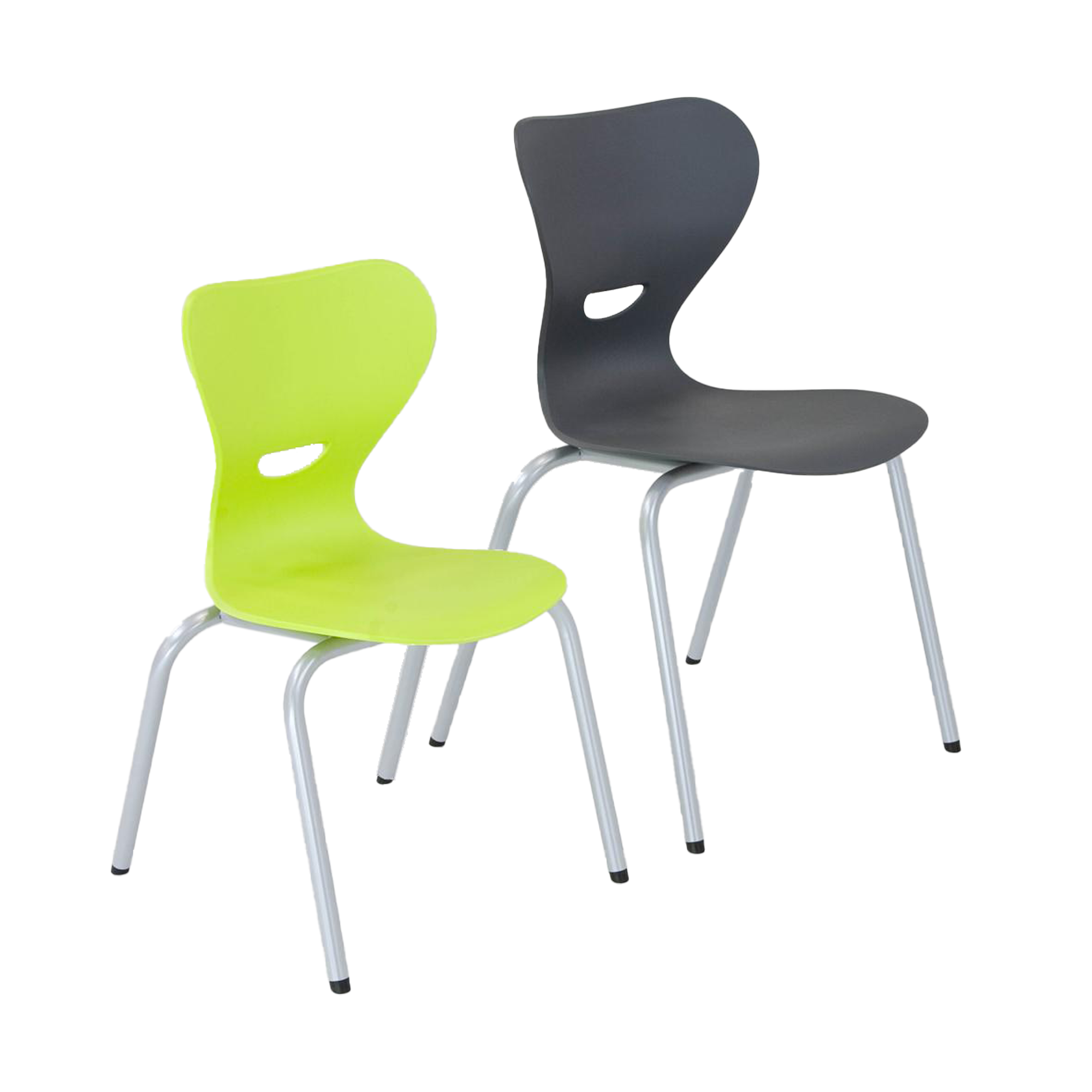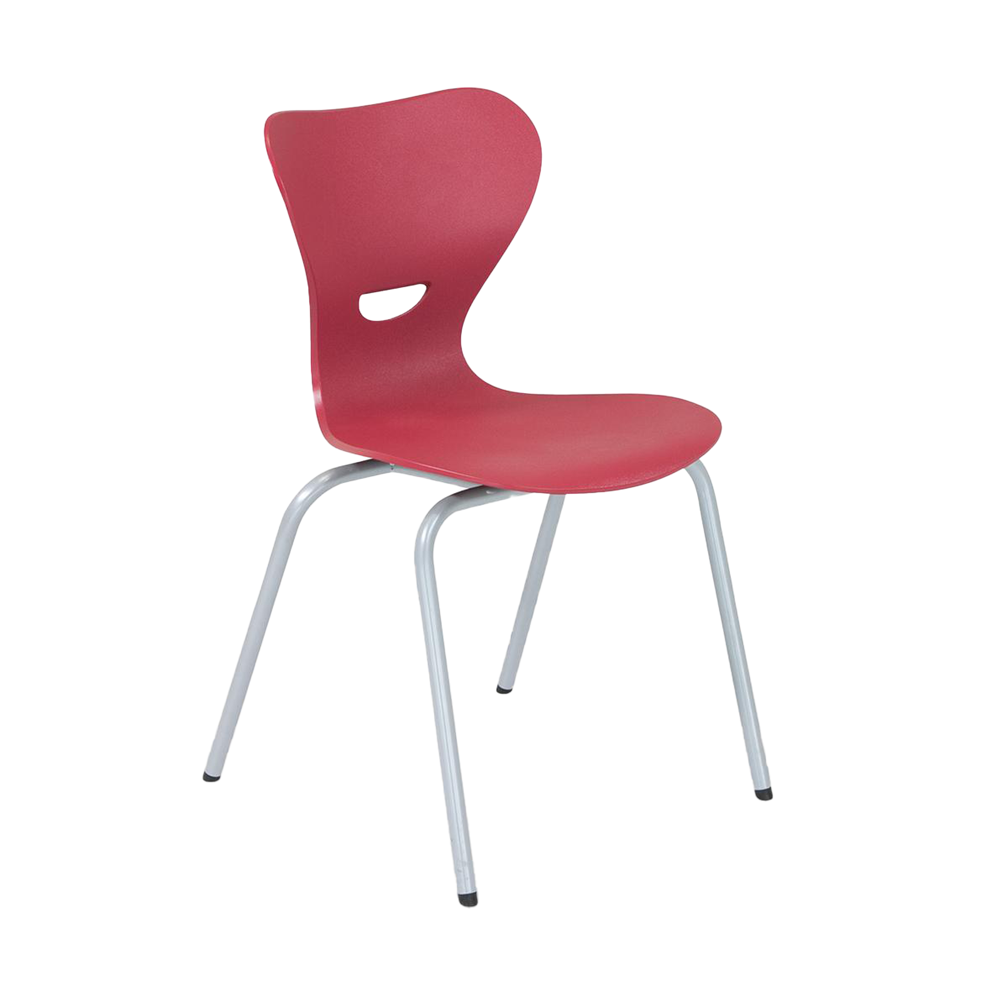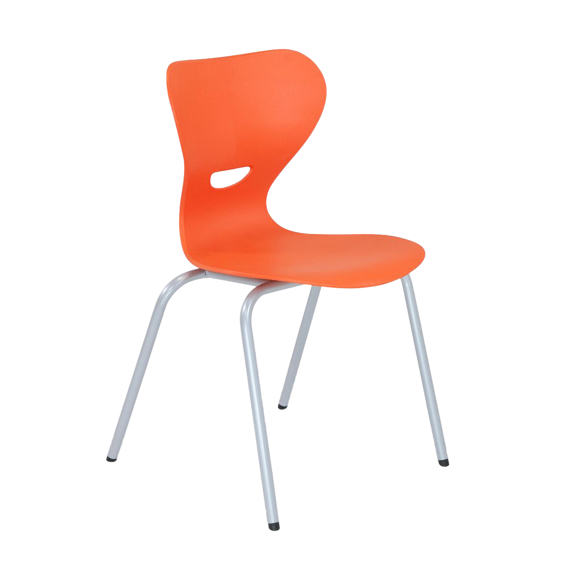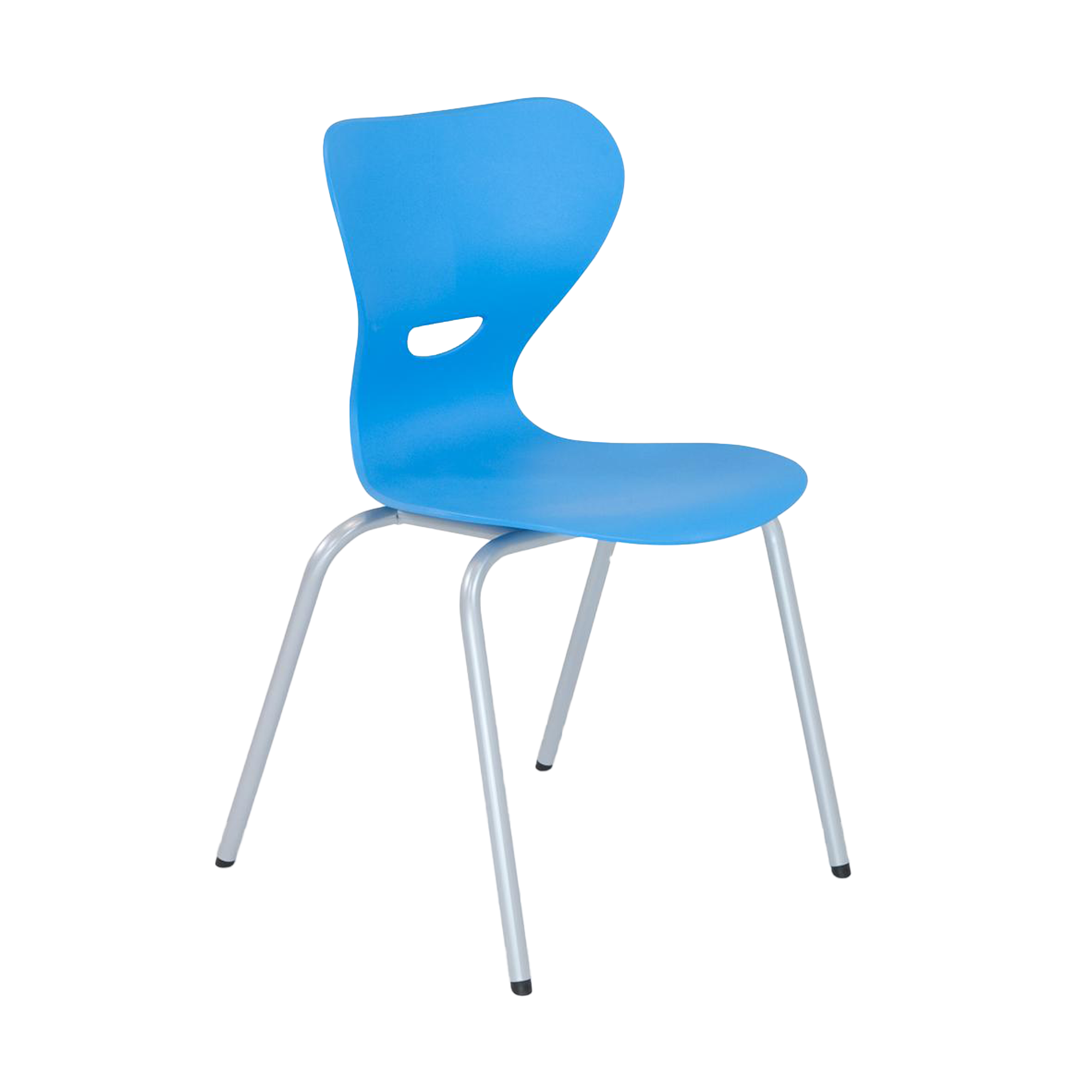 Unser stapelbarer Vierbeinstuhl zeichnet sich durch seine ergonomisch geformte, flexible und robuste Sitzschale, aus Kunststoff, mit Griffloch, aus.