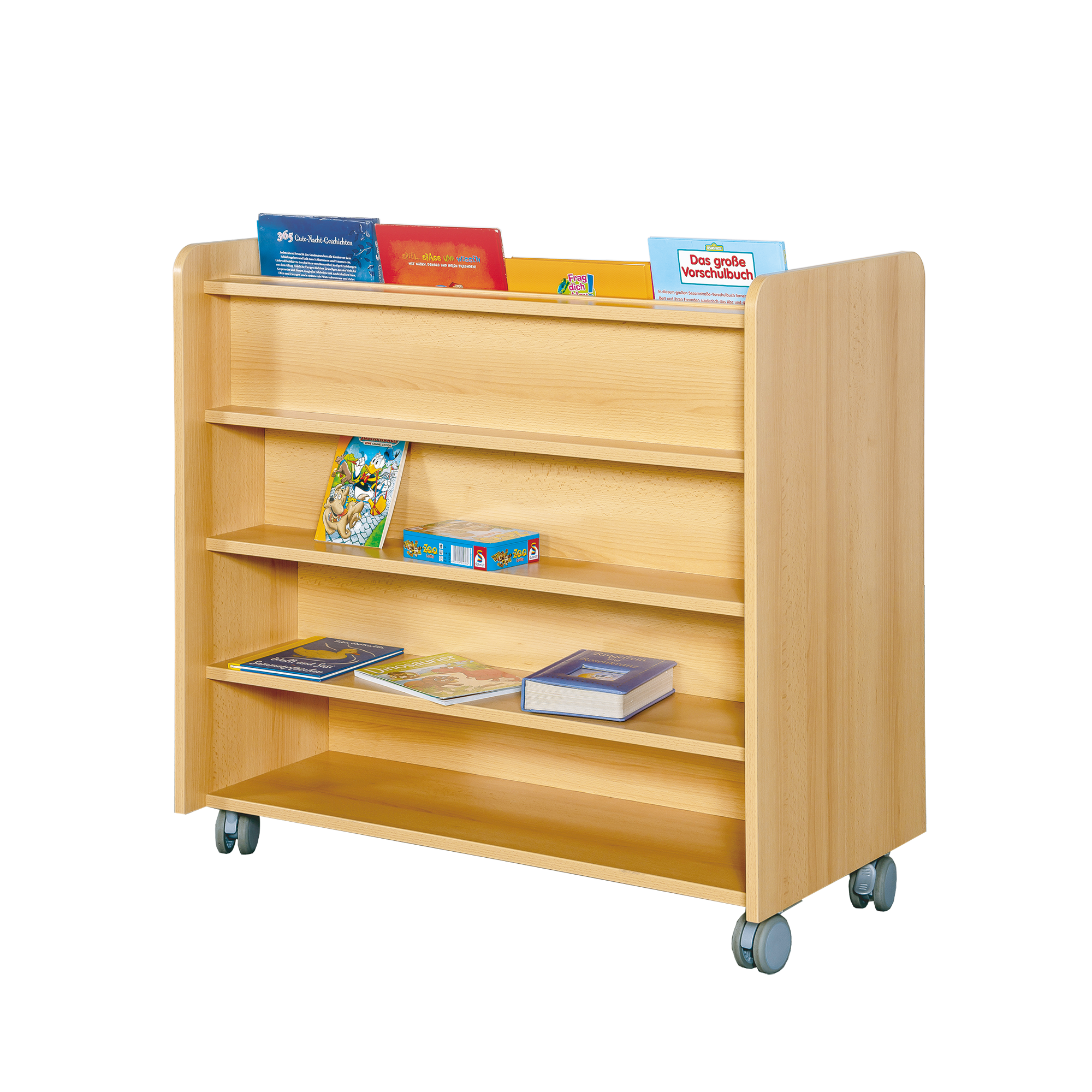 Diese mobile, beidseitig nutzbare Wendebibliothek auf vier Rollen, davon zwei feststellbar, bietet Platz für jede Menge Bücher.