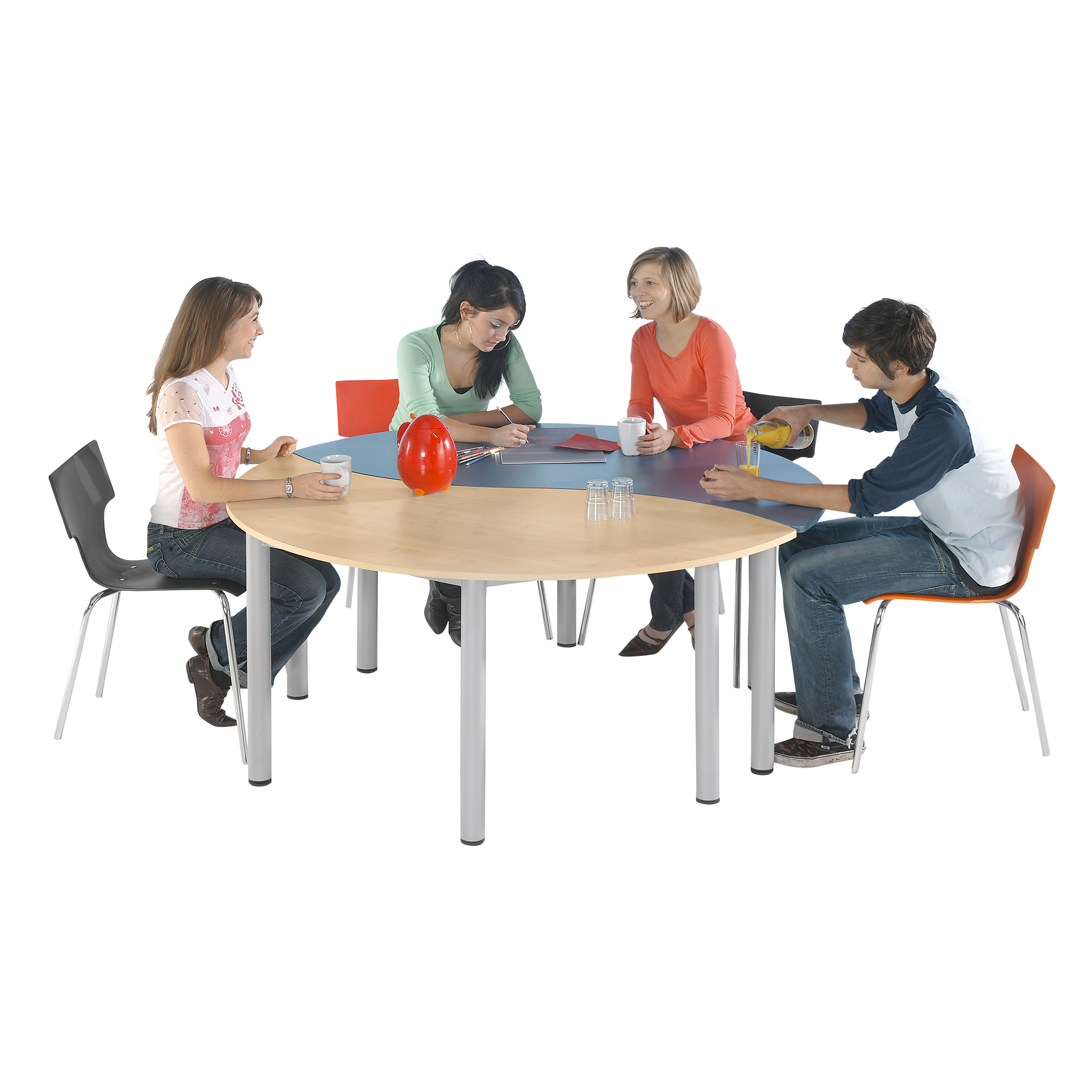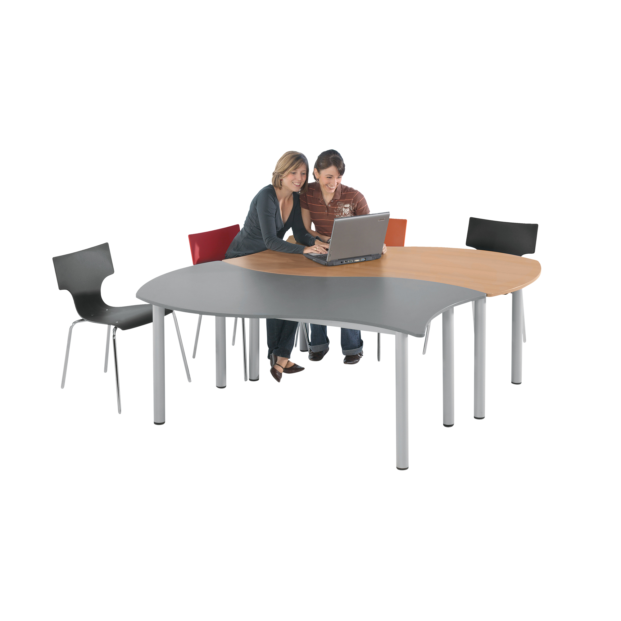 Macht die Besprechung es erforderlich, dass eine größere Menge Arbeitsmaterialien, Dokumente und Unterlagen benötigt werden, ist der Quadrat-Tisch schnell zu klein. Hier bietet sich ein rechteckiger Besprechungstisch an. Zum Platzvorteil gesellen sich die Vorzüge, dass die Teilnehmer noch nahe genug zusammensitzen, sodass die Gespräche weiterhin gut verstanden werden können. Egal ob rechteckiger, quadratischer Tisch oder zusammen: Die Raumaufteilung kann mit diesen Formen symmetrisch gestaltet werden und der Aufbau nahtlos erfolgen. Auch der Trapeztisch glänzt mit einer guten Kombinierbarkeit, vor allem auch, wenn ungewöhnliche Tischanordnungen gewünscht sind. Dreieckige Besprechungstische können eckige Tischflächen schnell vergrößern, ohne den identischen Tisch dafür verwenden zu müssen.