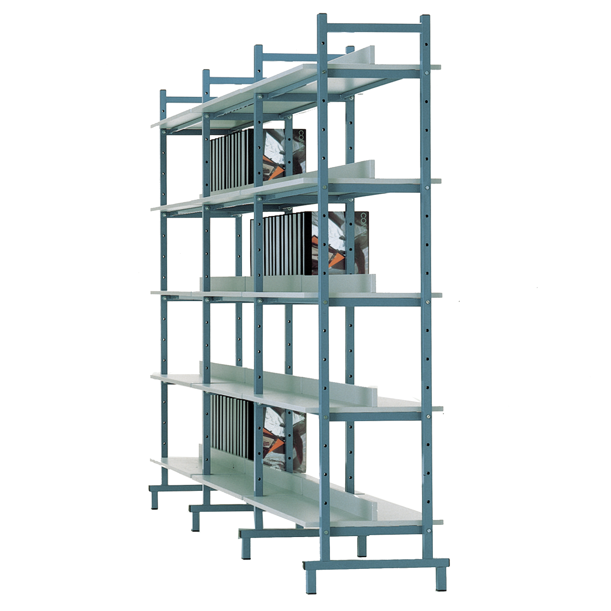 Schrägablage mit Tragrahmen und vorderer Acrylglas-Aufkantung für Bücherregal BR-E, inkl. 1 Stahlträger