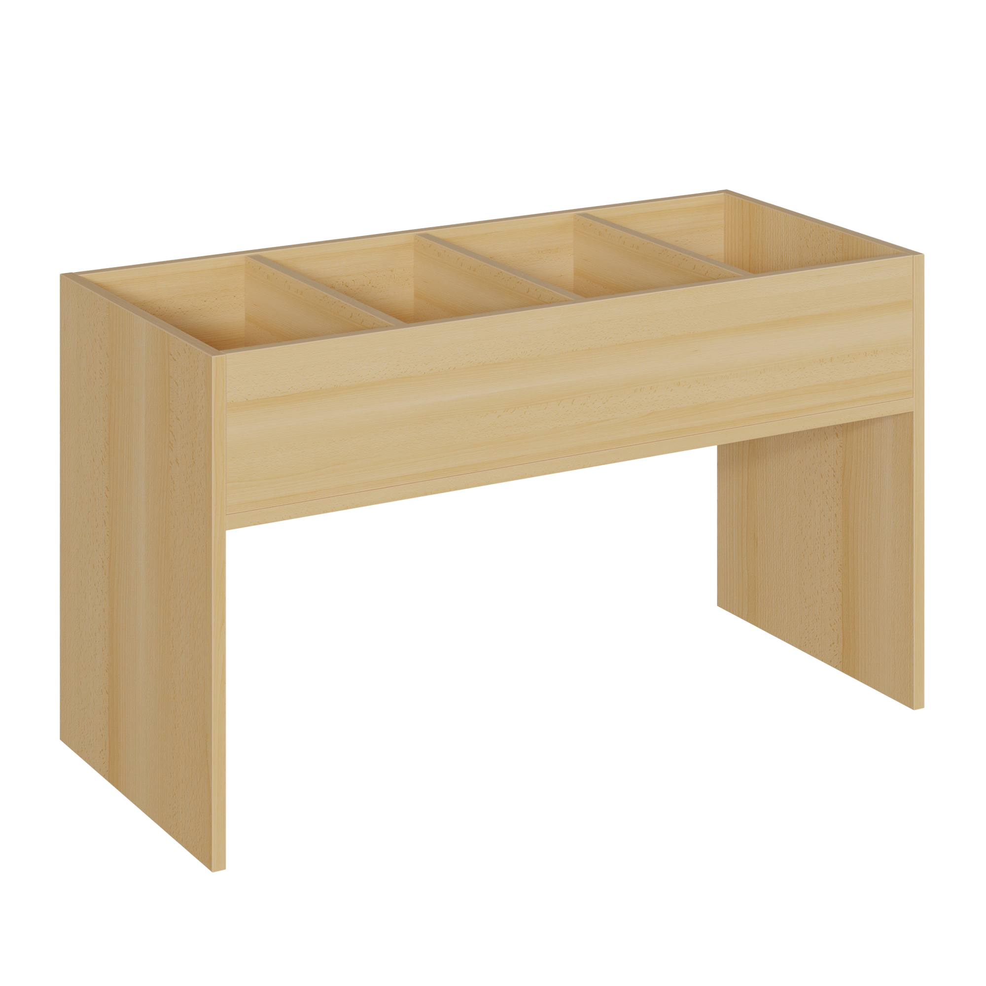 Für Modell BR-D doppelseitig Boden mit Stahlunterzug Böden aus beidseitig melaminharzbeschichteten 19mm E1-Feinspanplatten mit mittlerer Aufkantung 45 mm. Alle Kanten mit 2mm ABS-Umleimer geschlossen. Belastbarkeit größer 100kg