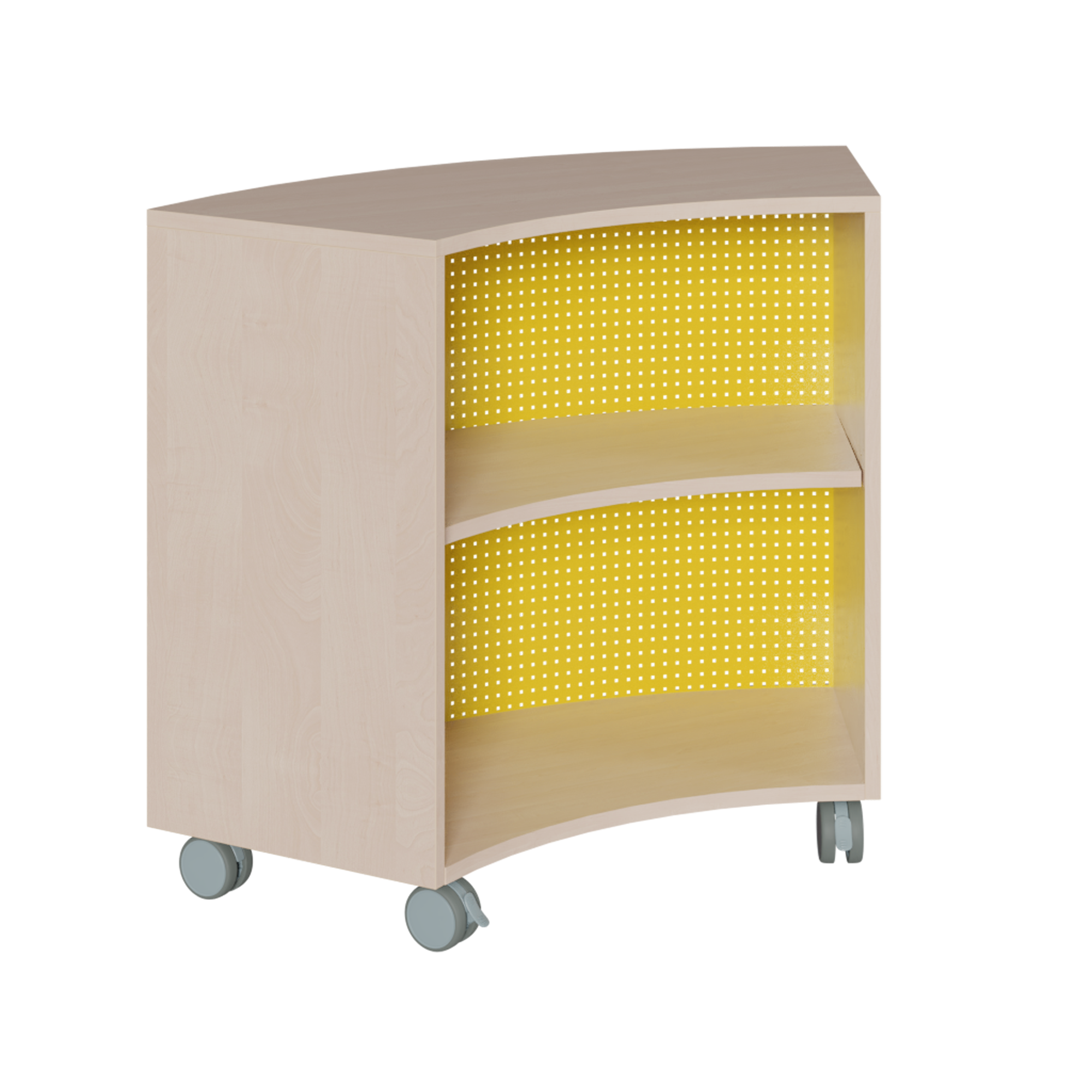 "Ein elegant gerundetes Sechstelkreis-Regal, welches dazu auf 5 Rollen sicher fährt, ist eine sehr schöne Ergänzung für die Einrichtung der Gruppenräume!"