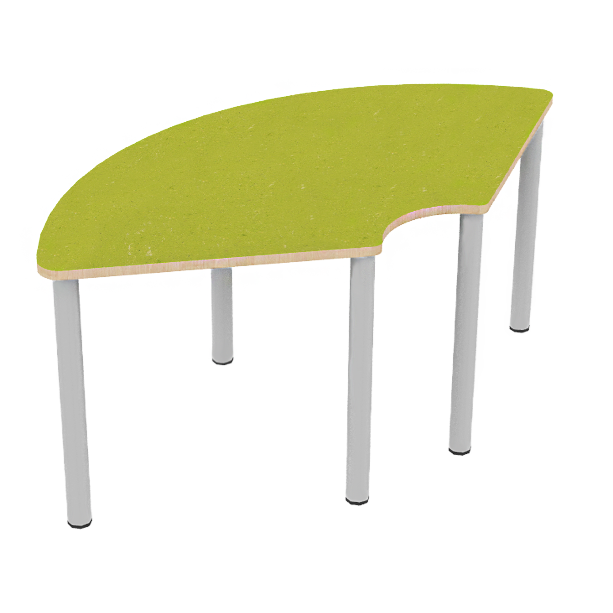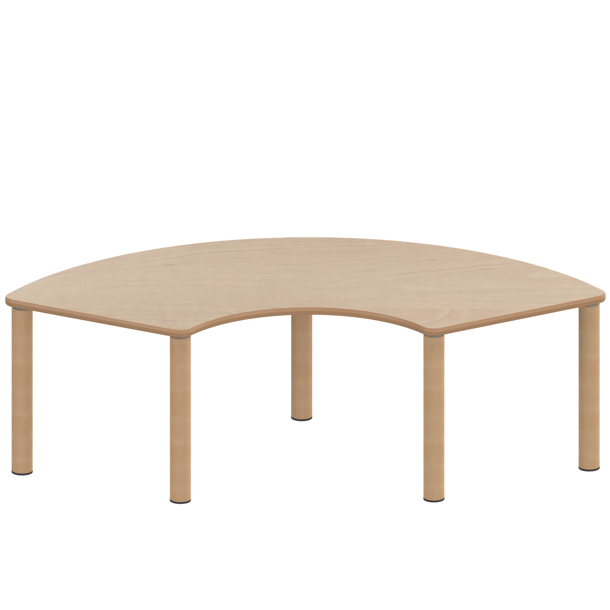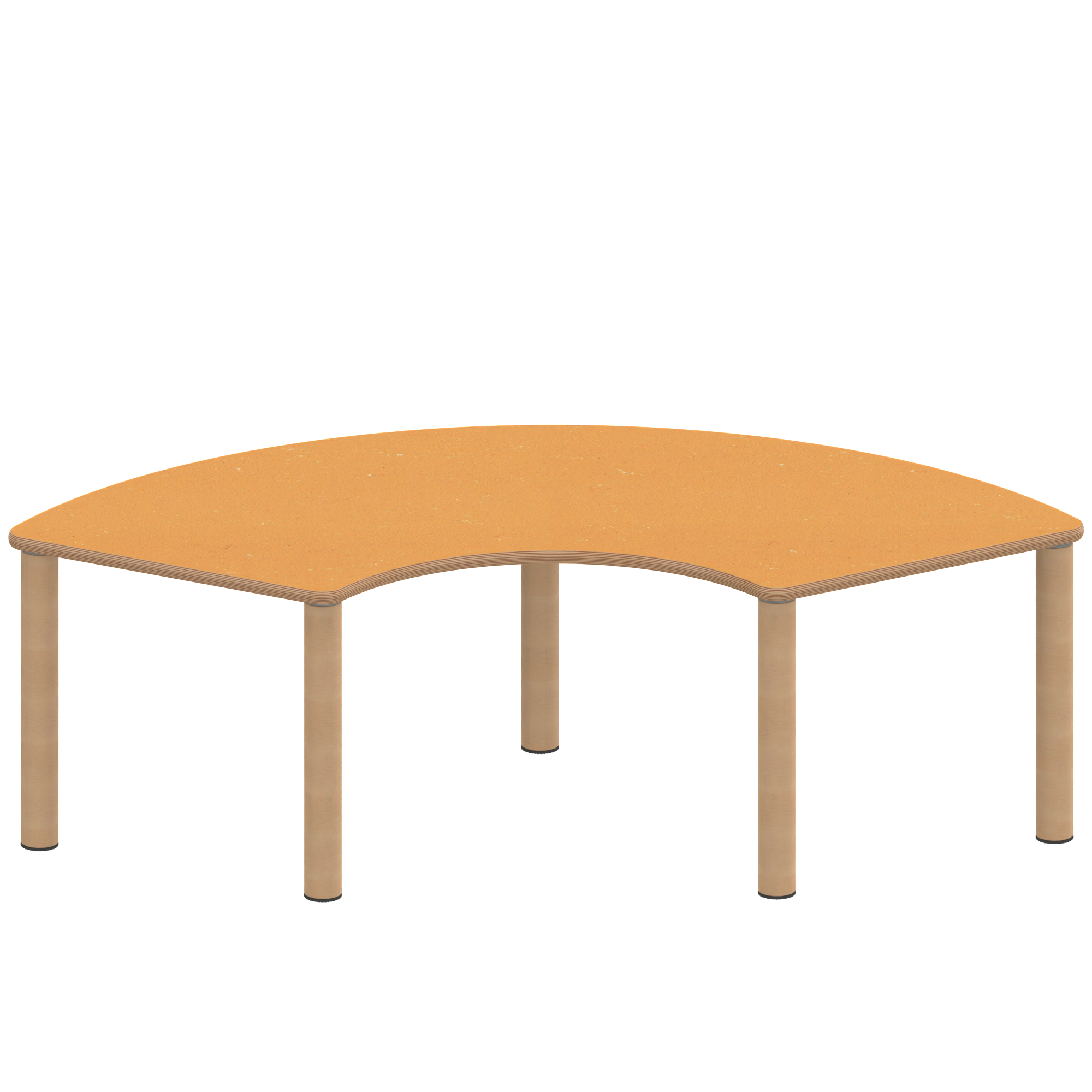 Drittelkreistische, Stellfläche B/T: 173x80 cm, Höhen 25…76 cm, Massivholzbeine Ø 60 mm, Fußvariante: Stellfuß