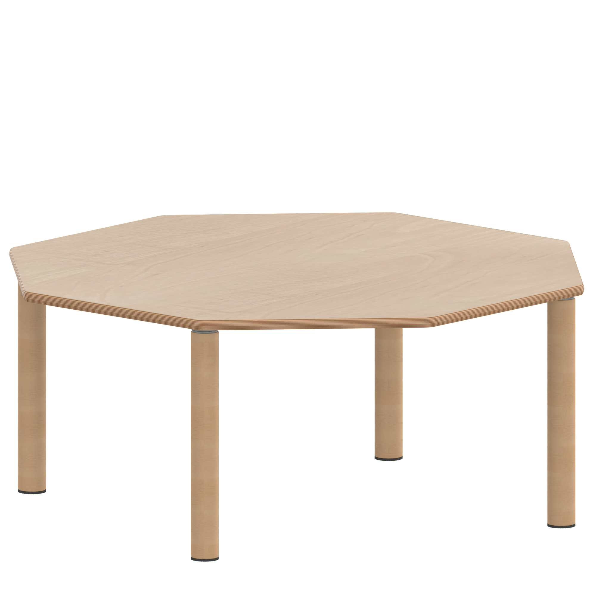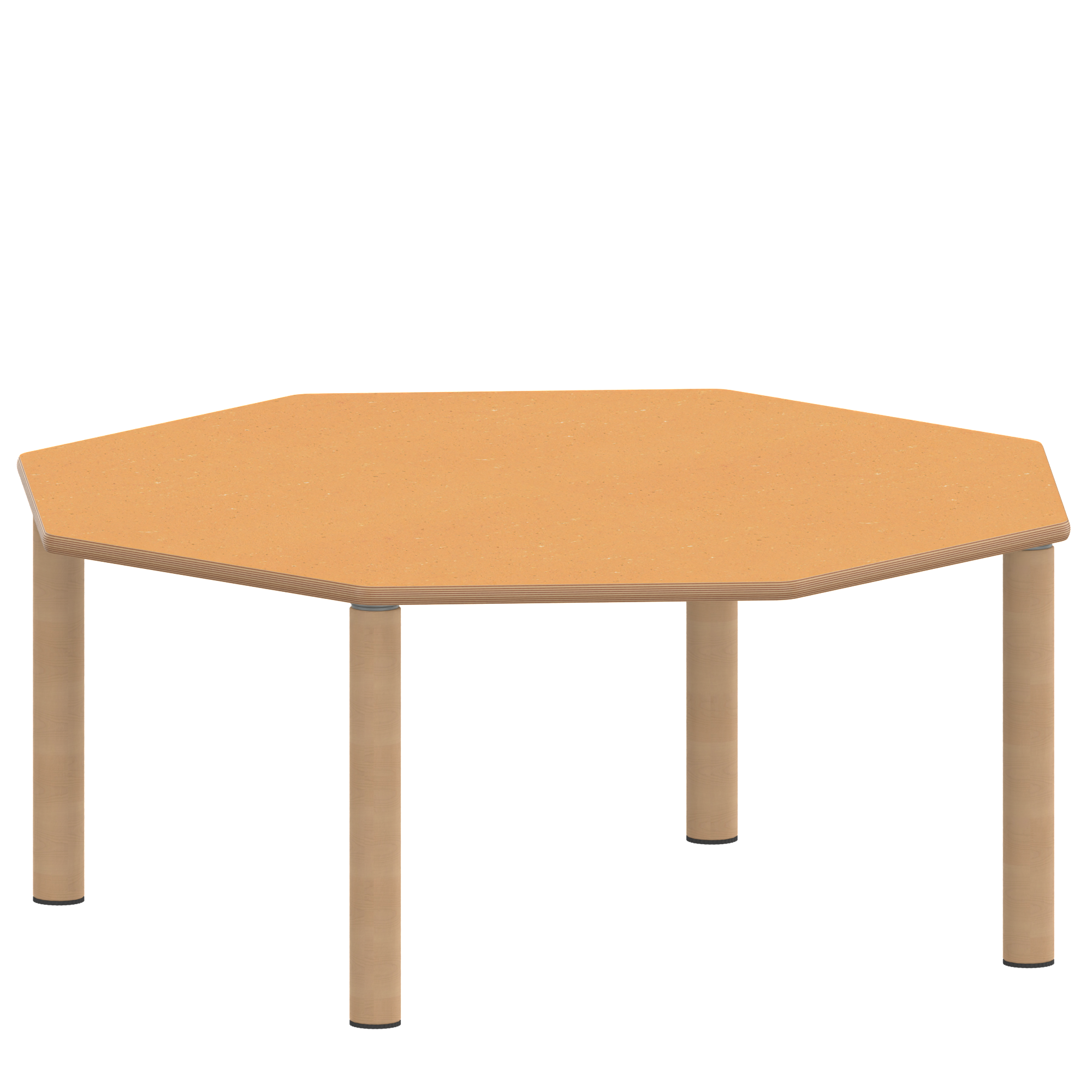 Achtecktische, Plattenmaß B/T: 120x120 cm, Höhen 25…76 cm, Massivholzbeine Ø 60 mm, Fußvariante: Stellfuß