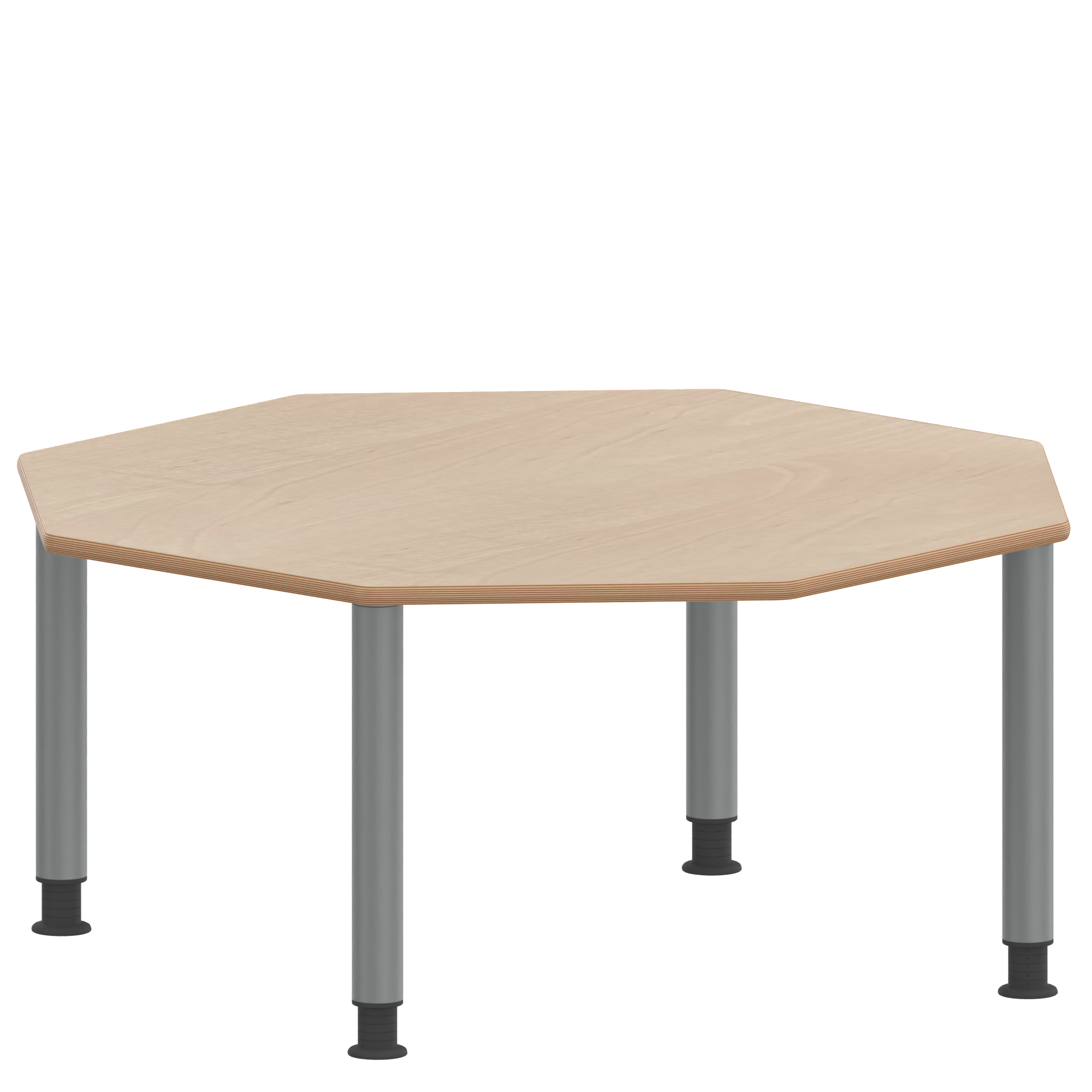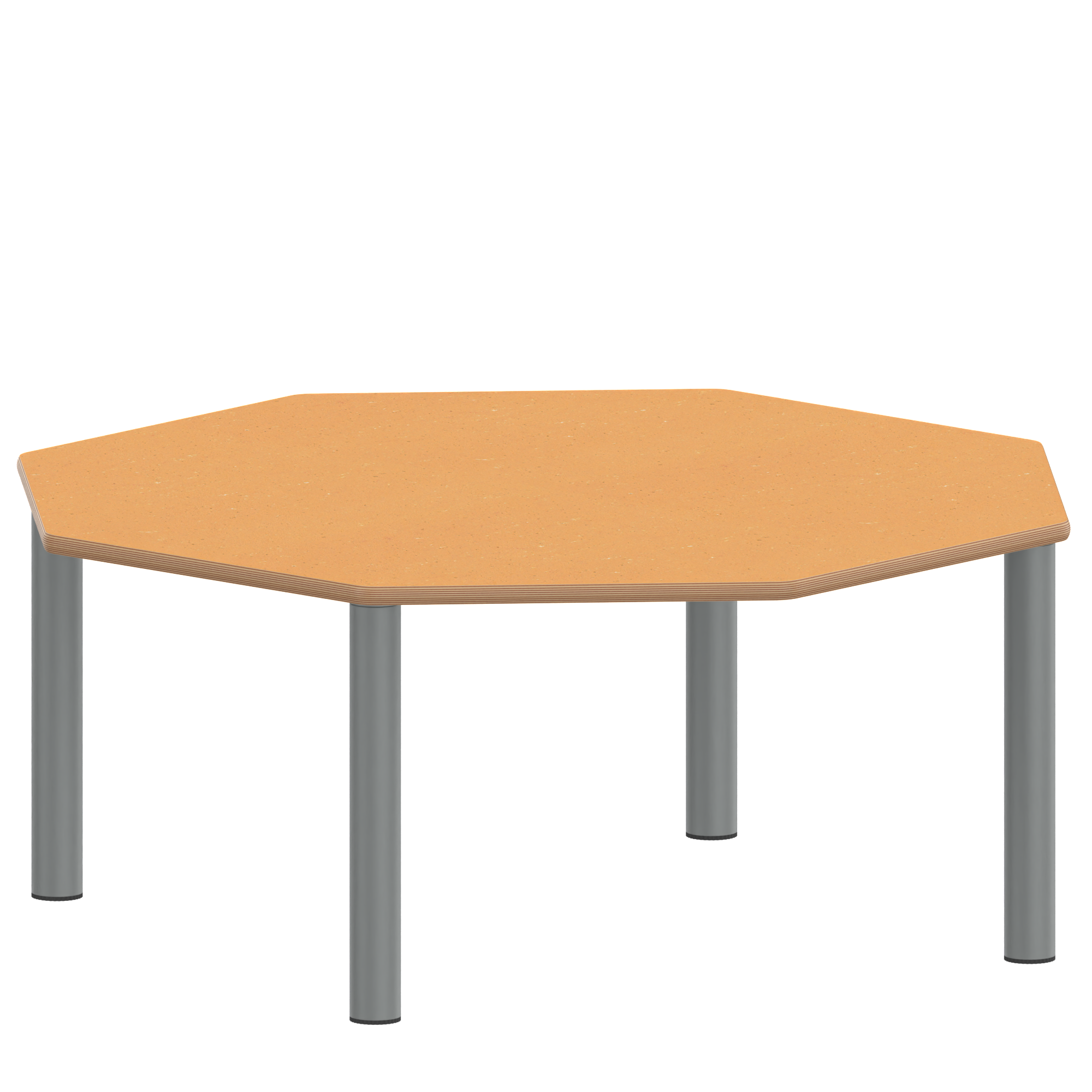 Achtecktische, Plattenmaß B/T: 120x120 cm, Höhen 25…76 cm, Stahlrohrbeine Ø 60 mm, Fußvariante: Stellfuß