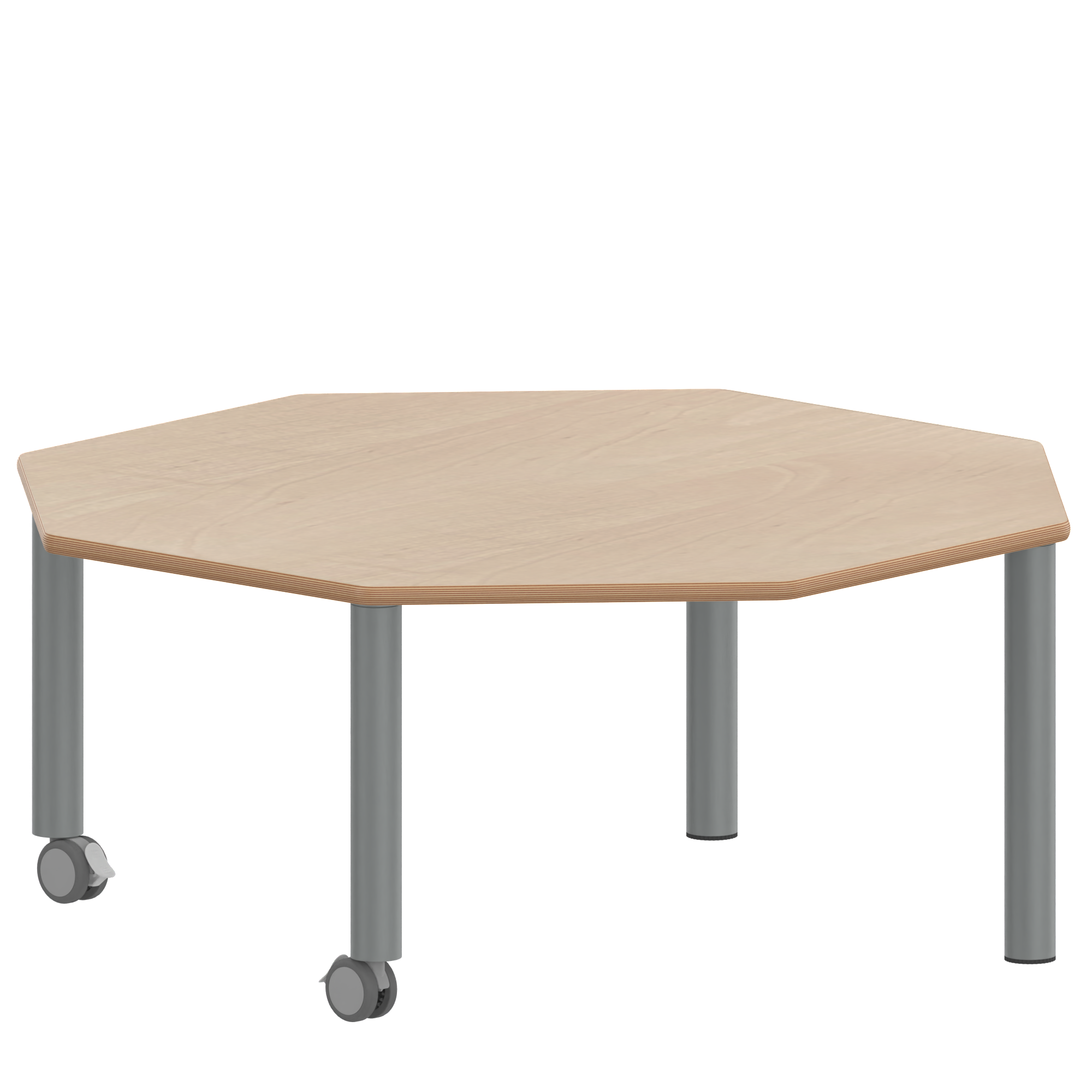 Achtecktische, Plattenmaß B/T: 120x120 cm, Höhen 25…76 cm, Massivholzbeine Ø 60 mm, Fußvariante: fahrbar