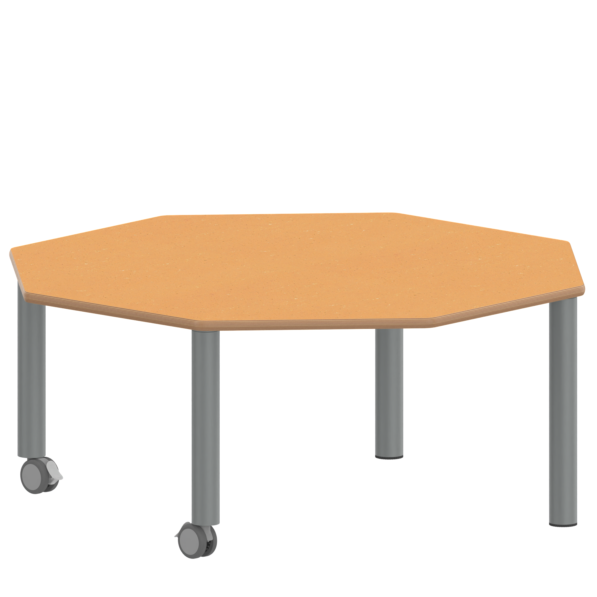 Achtecktische, Plattenmaß B/T: 120x120 cm, Höhen 25…76 cm, Stahlrohrbeine Ø 60 mm, Fußvariante: fahrbar