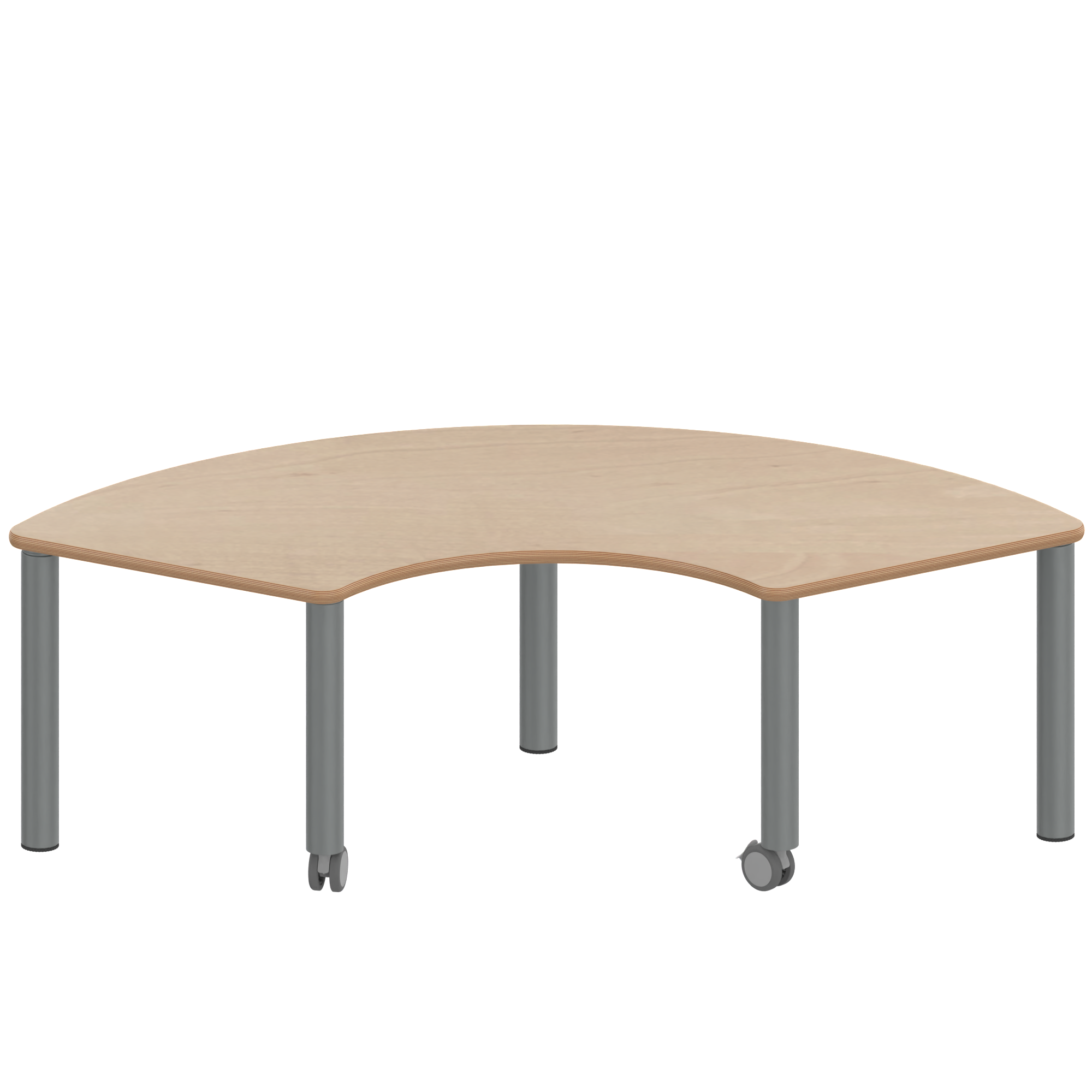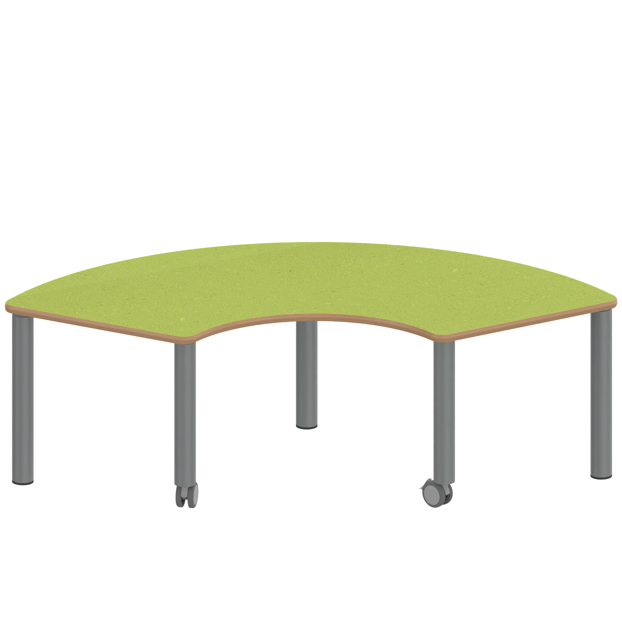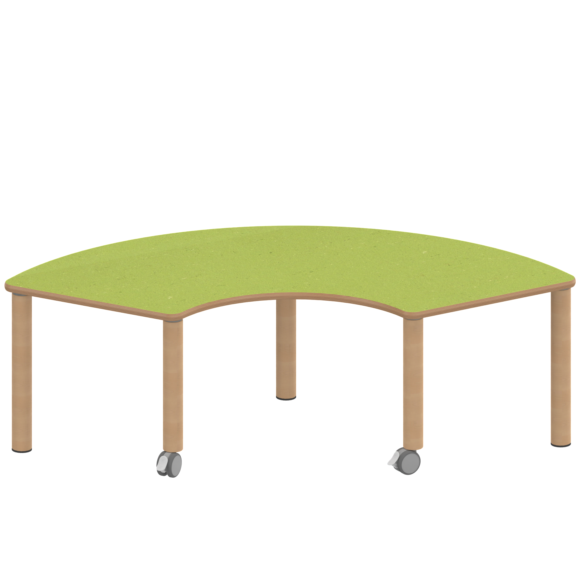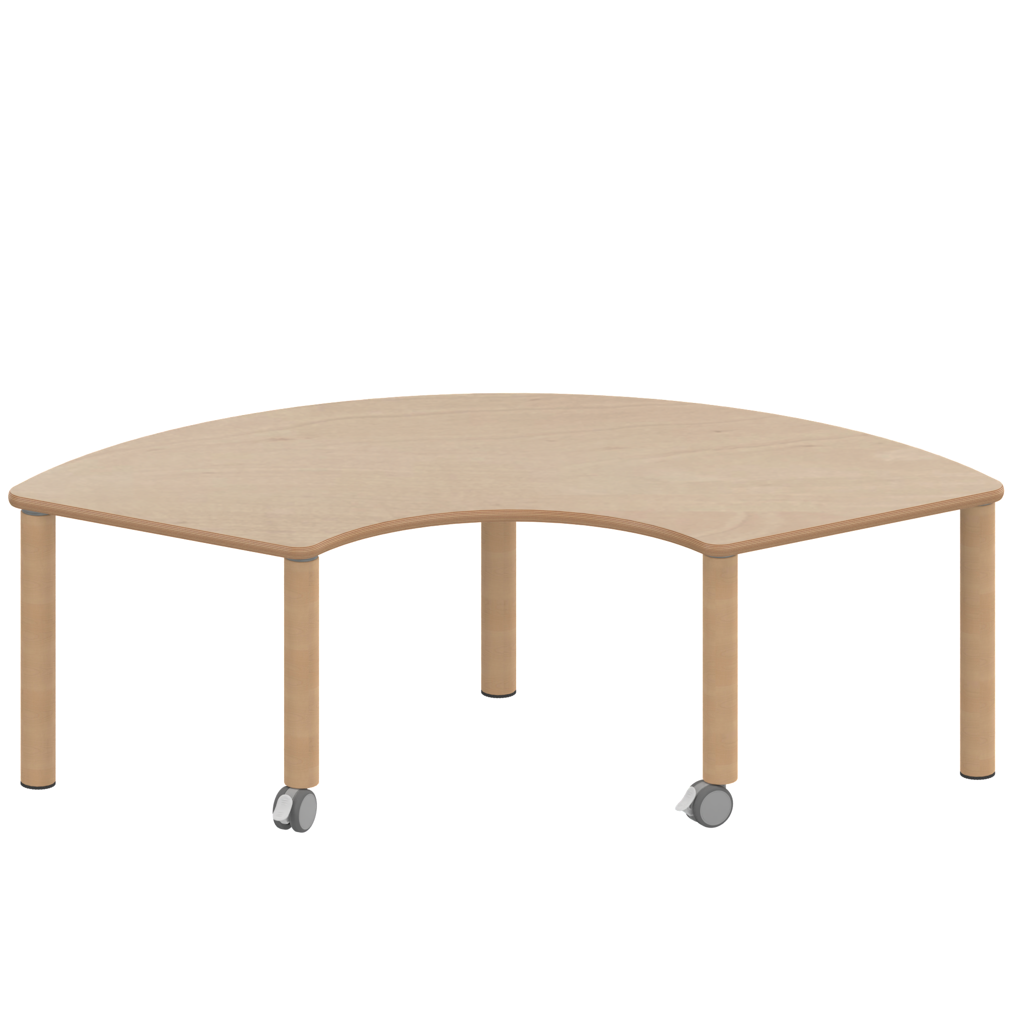 Drittelkreistische, Stellfläche B/T: 173x80 cm, Höhen 25…76 cm, Massivholzbeine Ø 60 mm, Fußvariante: fahrbar