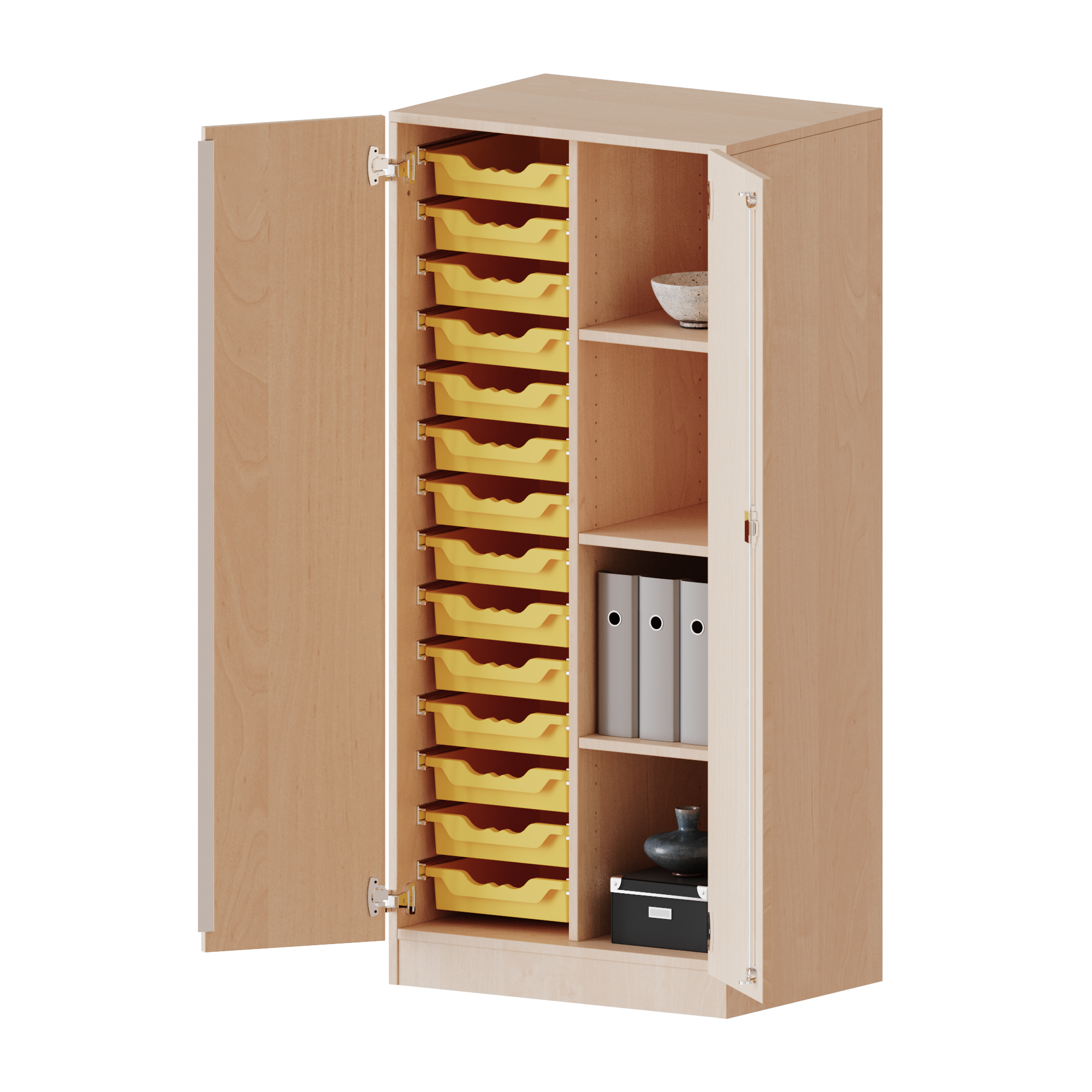 Hinter stilvoll designten verschließbaren Holztüren lassen sich diverse Dinge unterschiedlichster Größen in unseren Schubladenschränken verräumen. So bleibt alles, was Sie verstauen wollen ordentlich staubfrei und sicher verwahrt.