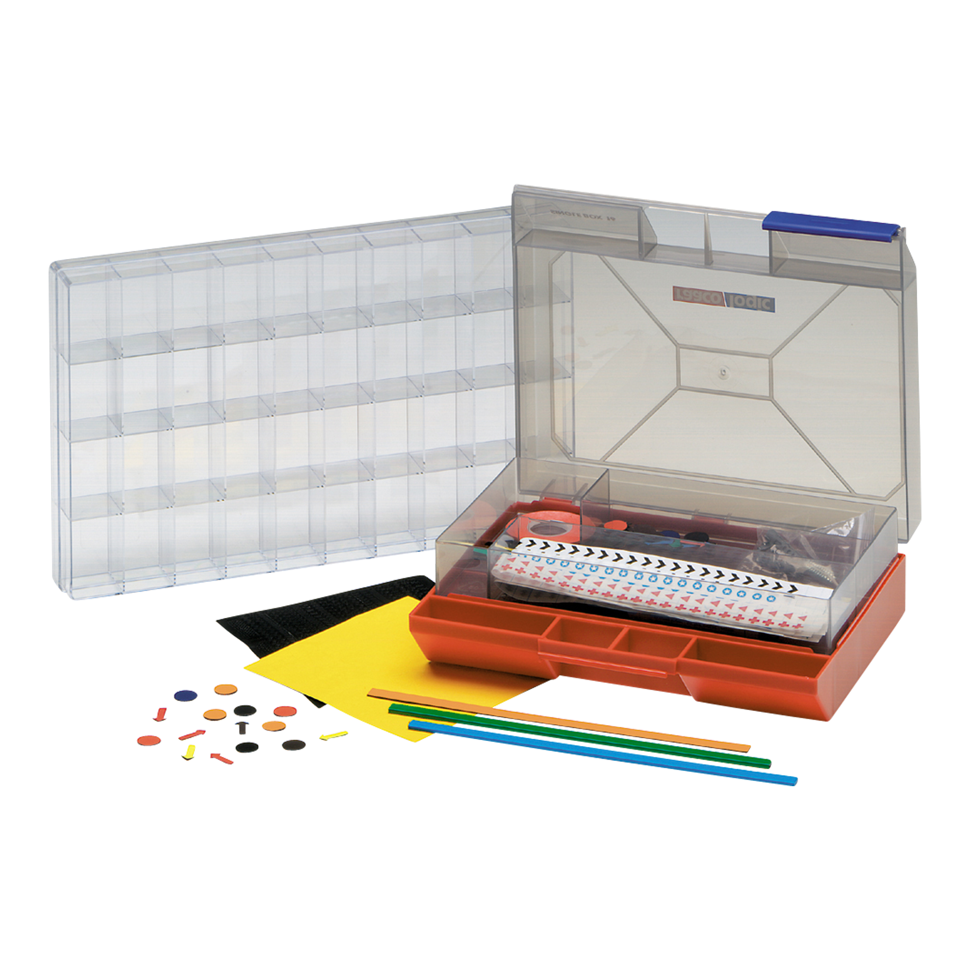 Dieser Sortierkasten bietet 40 separate Fächer, ideal zur Aufbewahrung kleiner Teile wie Symbole mit einer Größe von 10x30 mm.