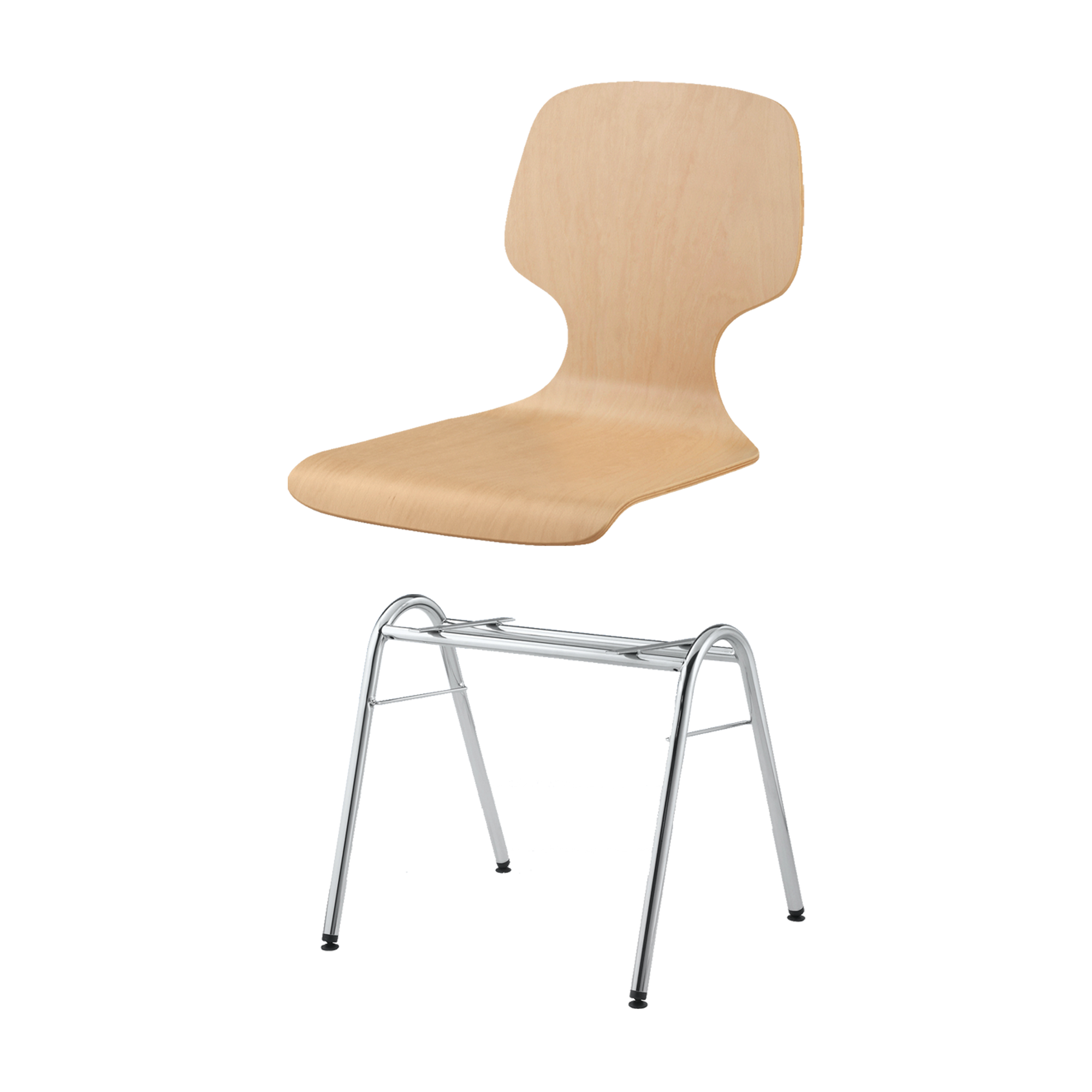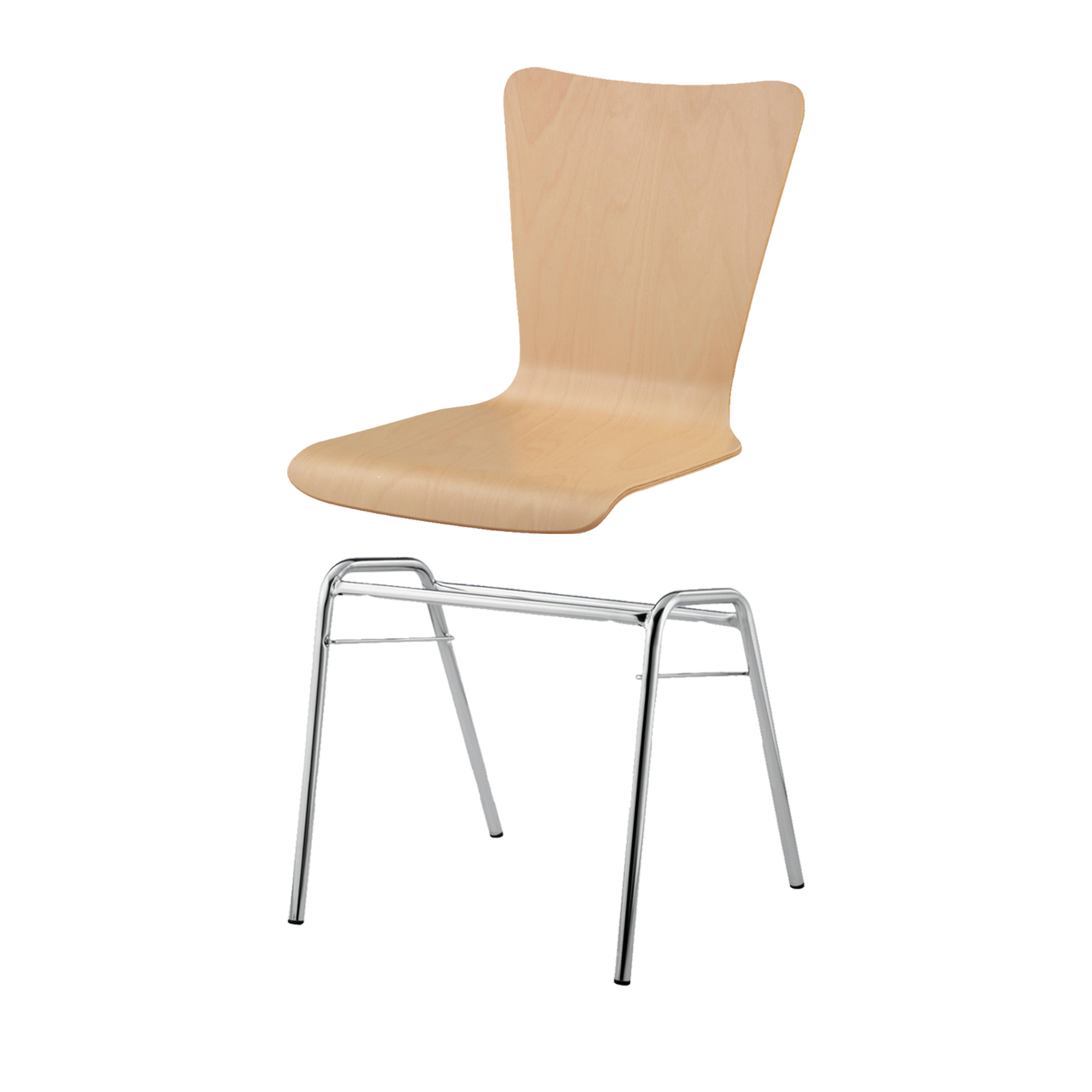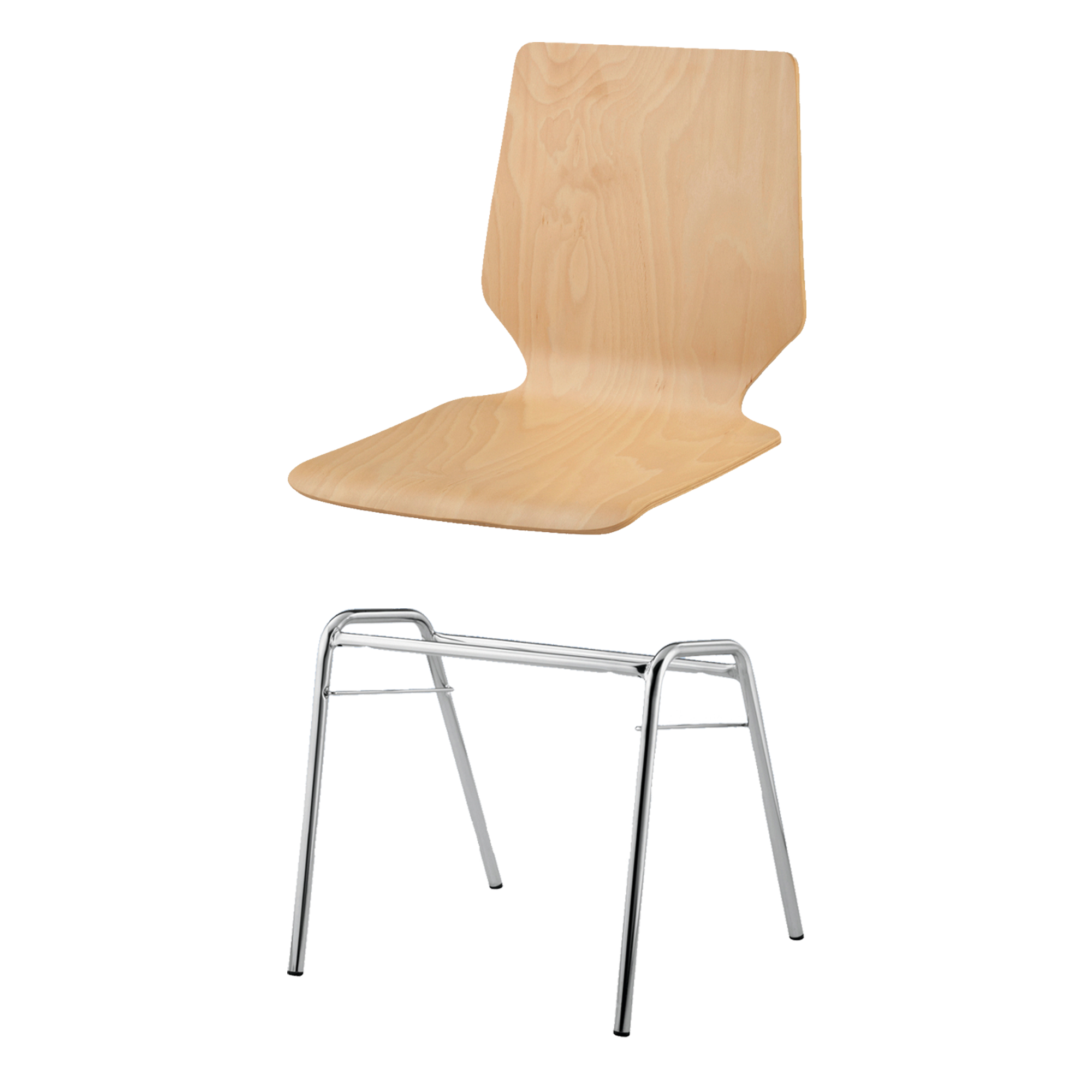 Sitzhöhe: 46 cm, Sitzschale Buche natur, Gestellform nach Wahl, verchromt