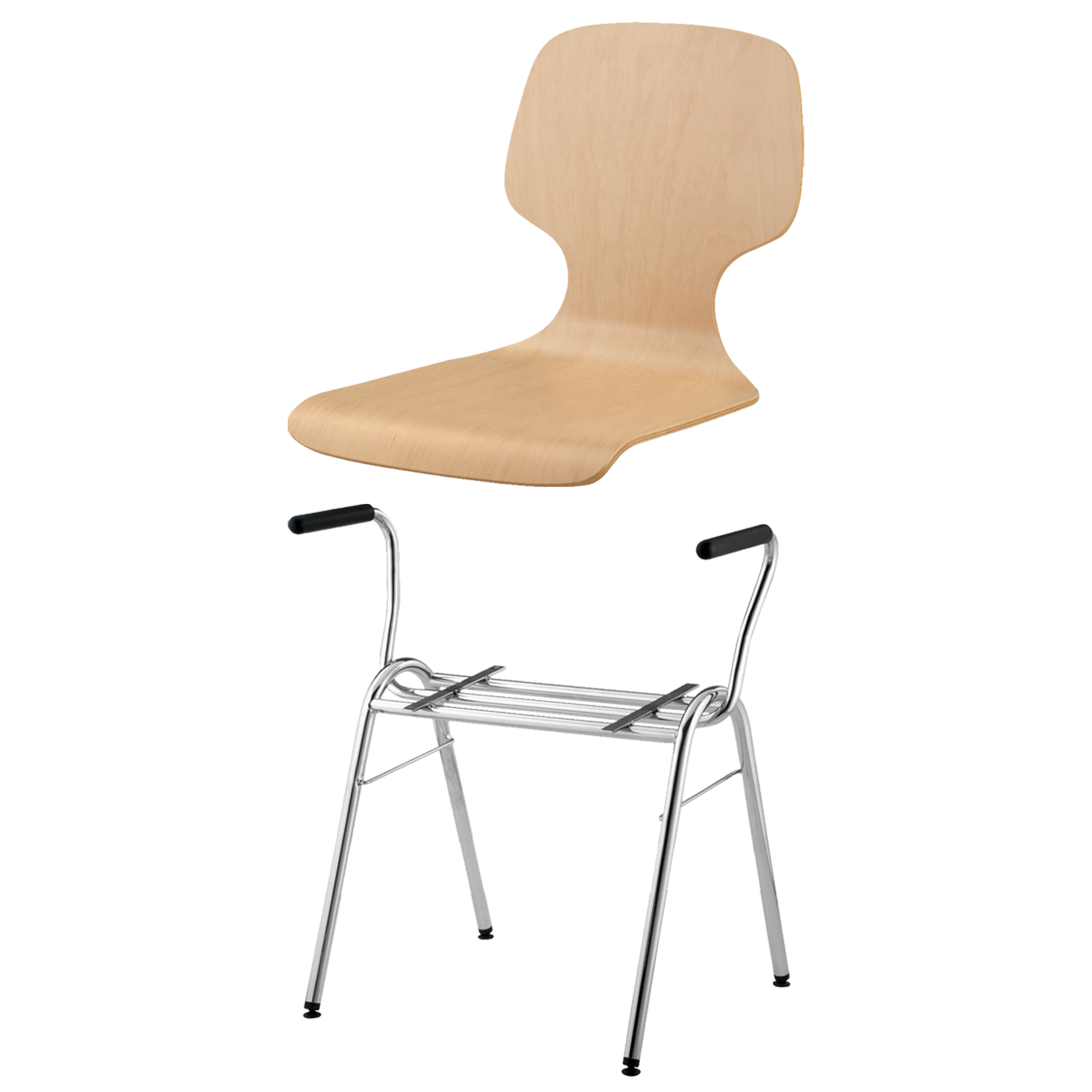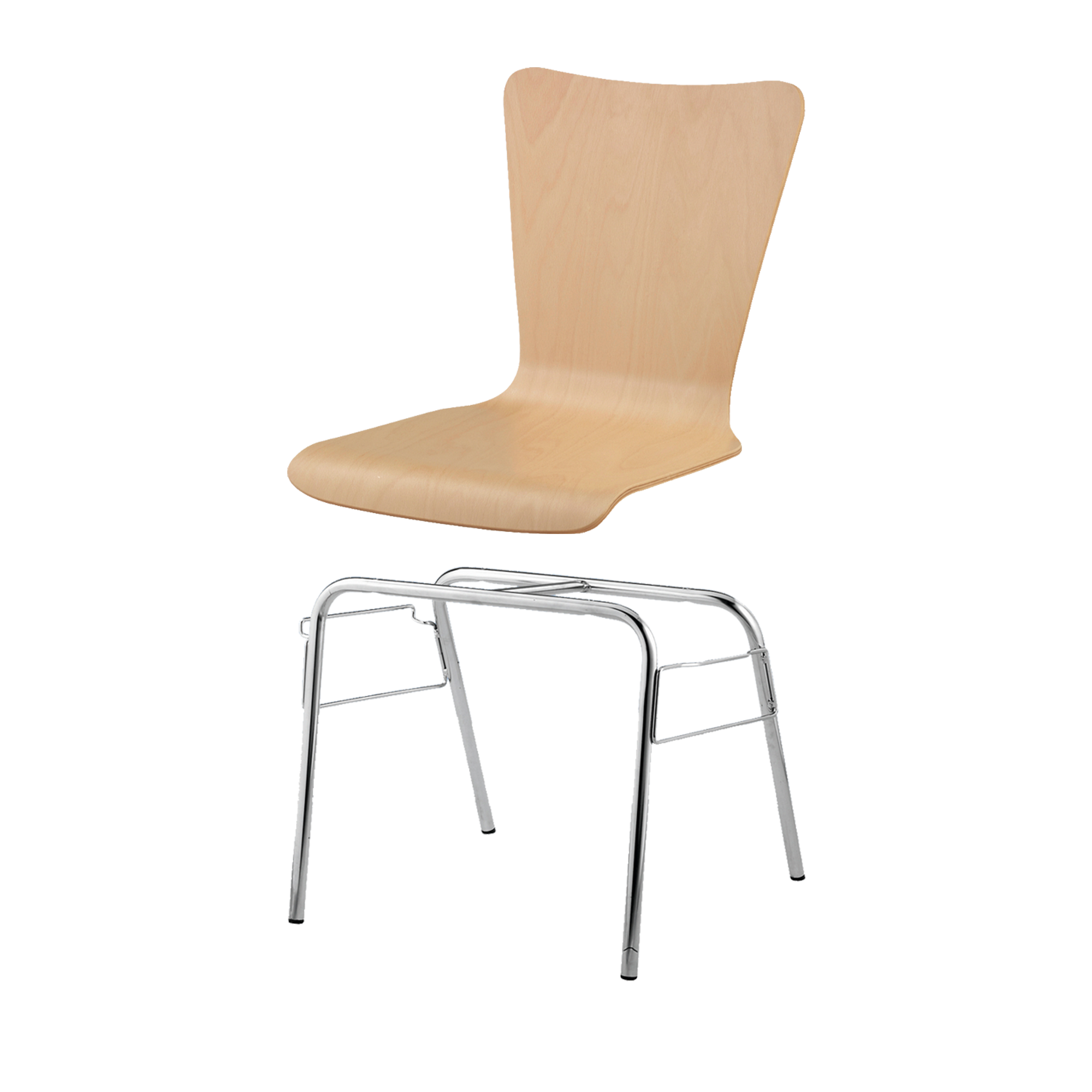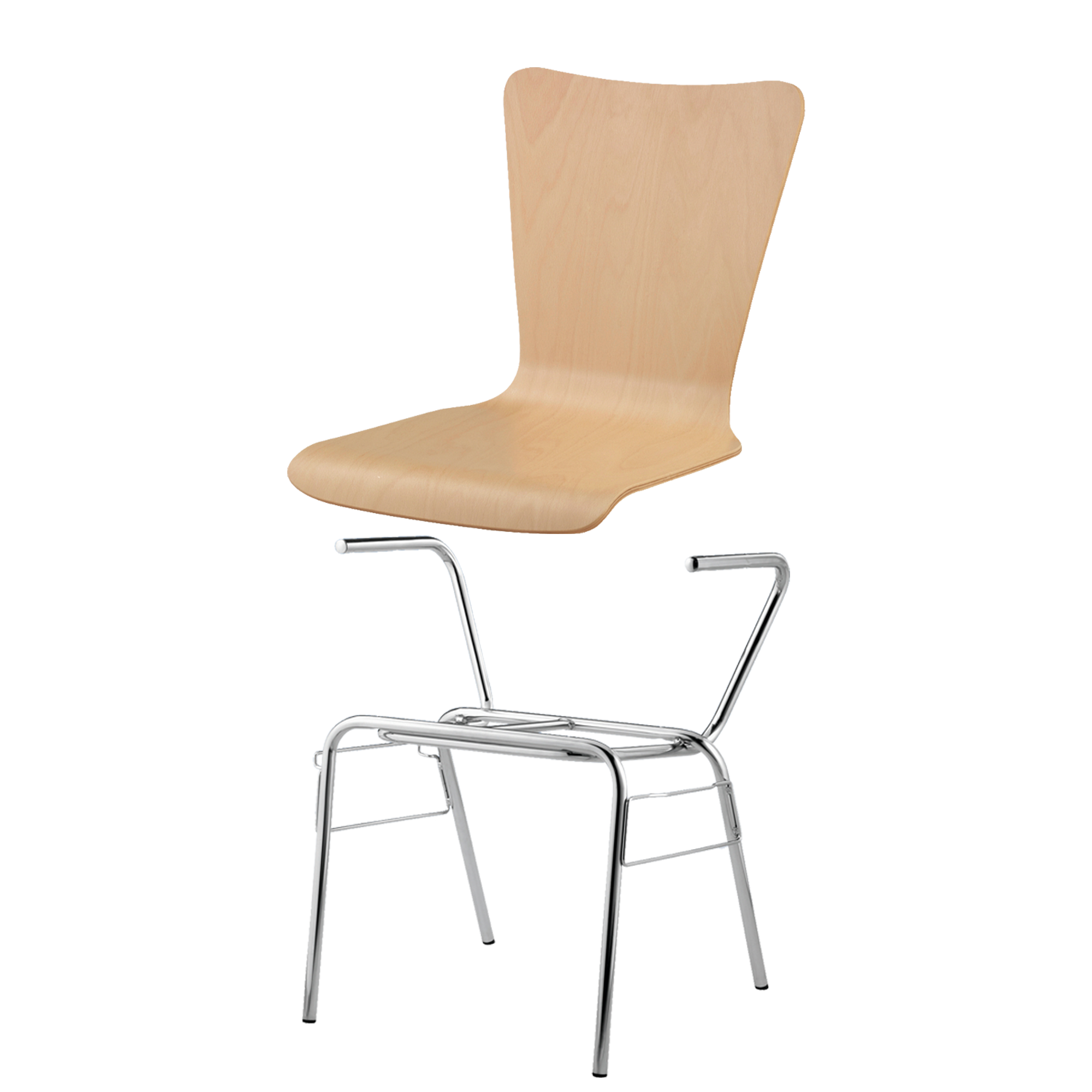 Sitzhöhe: 46 cm, Sitzschale Buche natur, Gestellform nach Wahl, verchromt