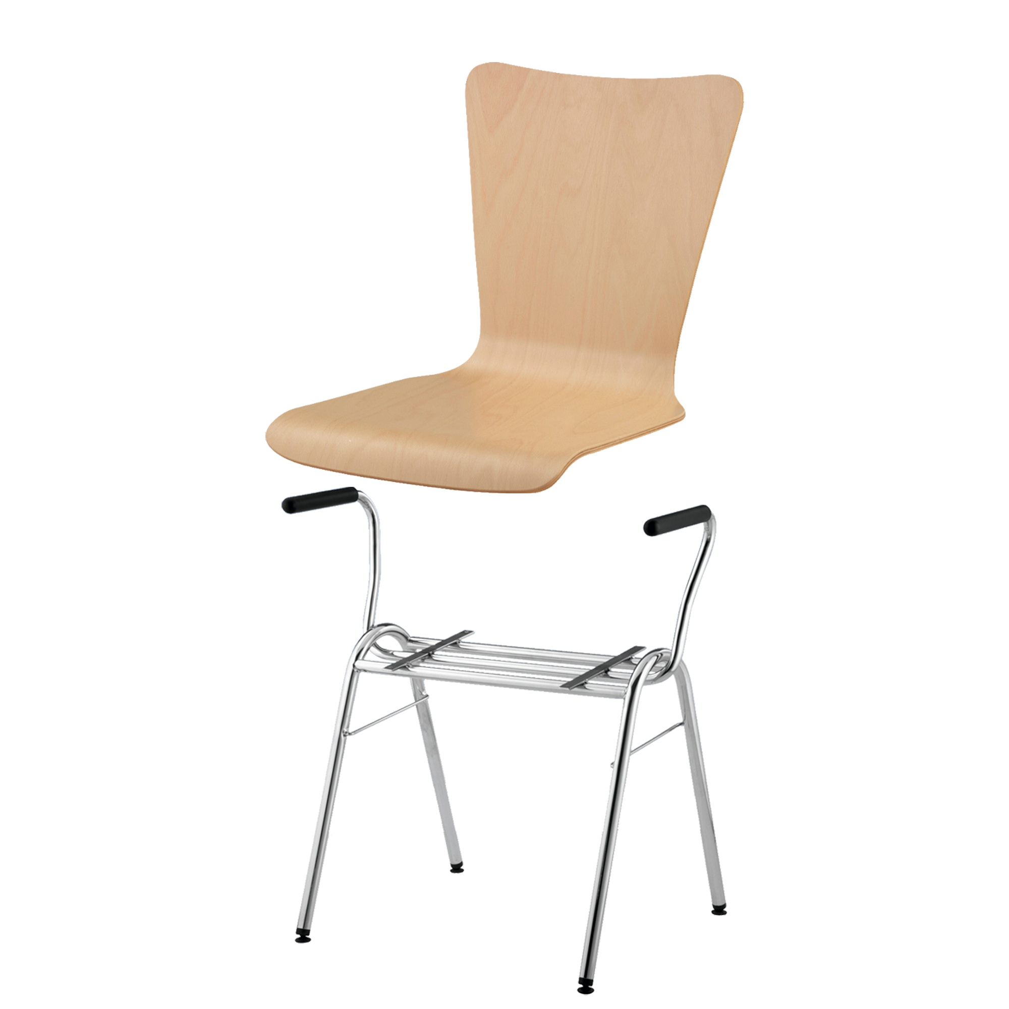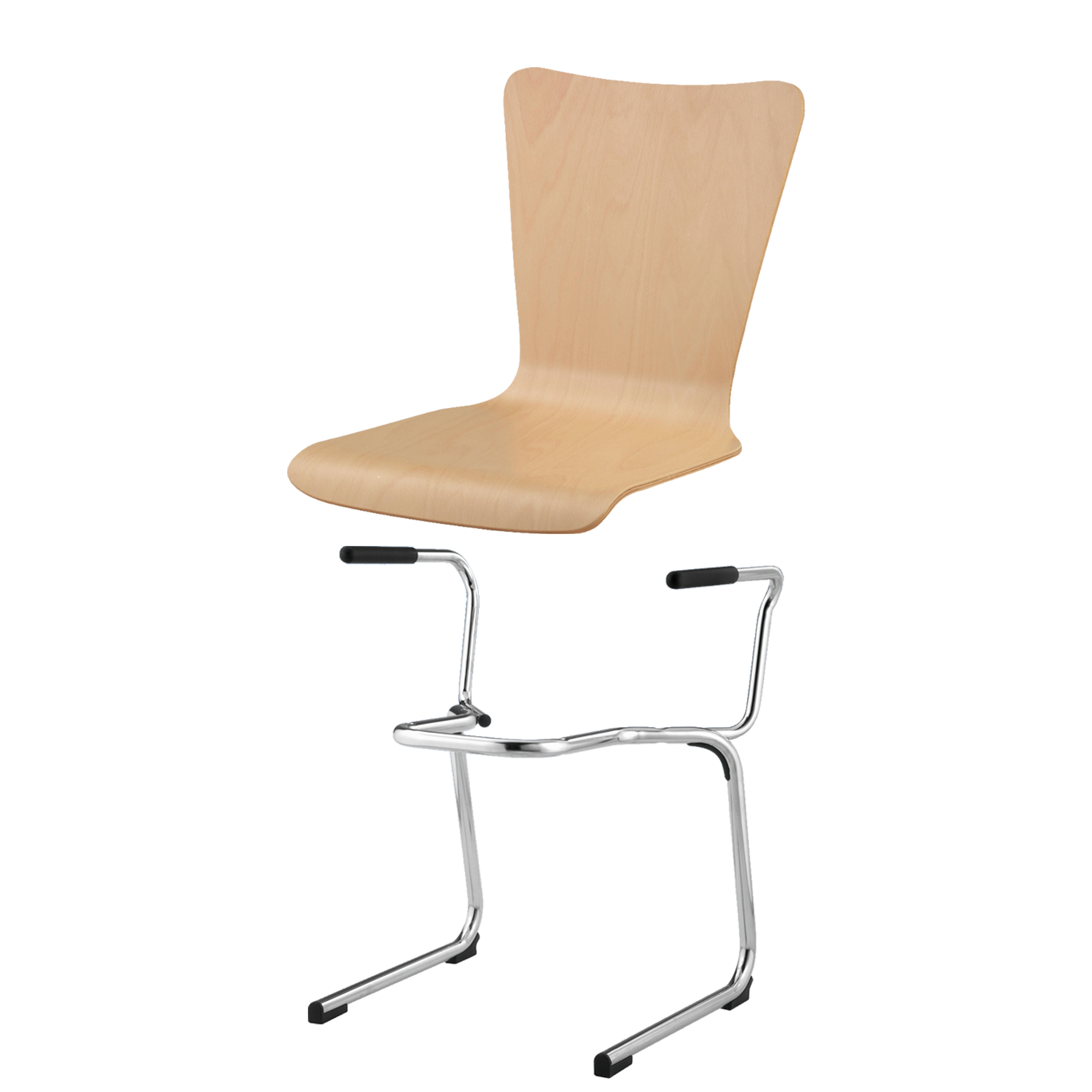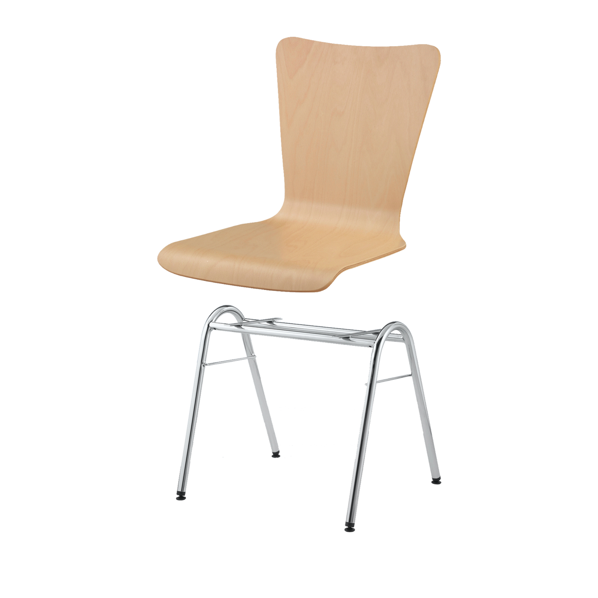 Sitzhöhe: 46 cm, Sitzschale Buche natur, Gestellform nach Wahl, verchromt