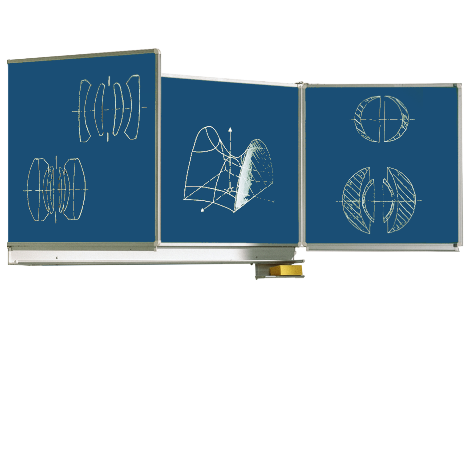 Mittelfläche 200x100 cm, Tafelflügel 100x100 cm 6 m² Schreibfläche, mit Bodenabstützung