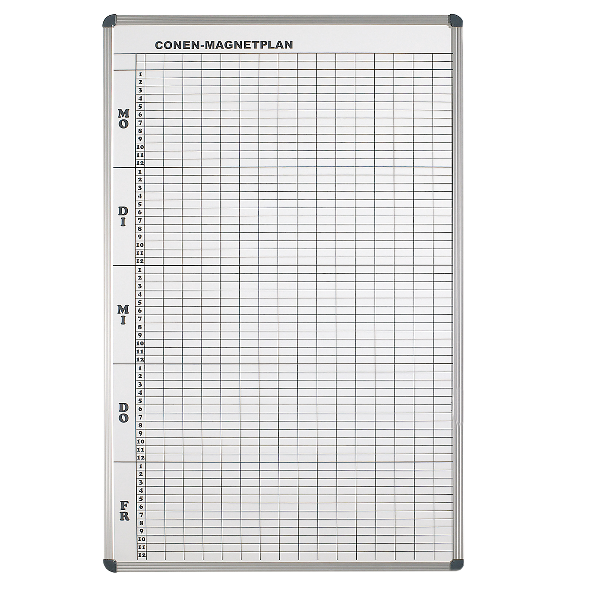 B/H: 77x123 cm, 12 Stunden, 15 Klassen, Stahlemaillie weiß, magnethaftend, mit Whiteboardmarkern beschreibbar