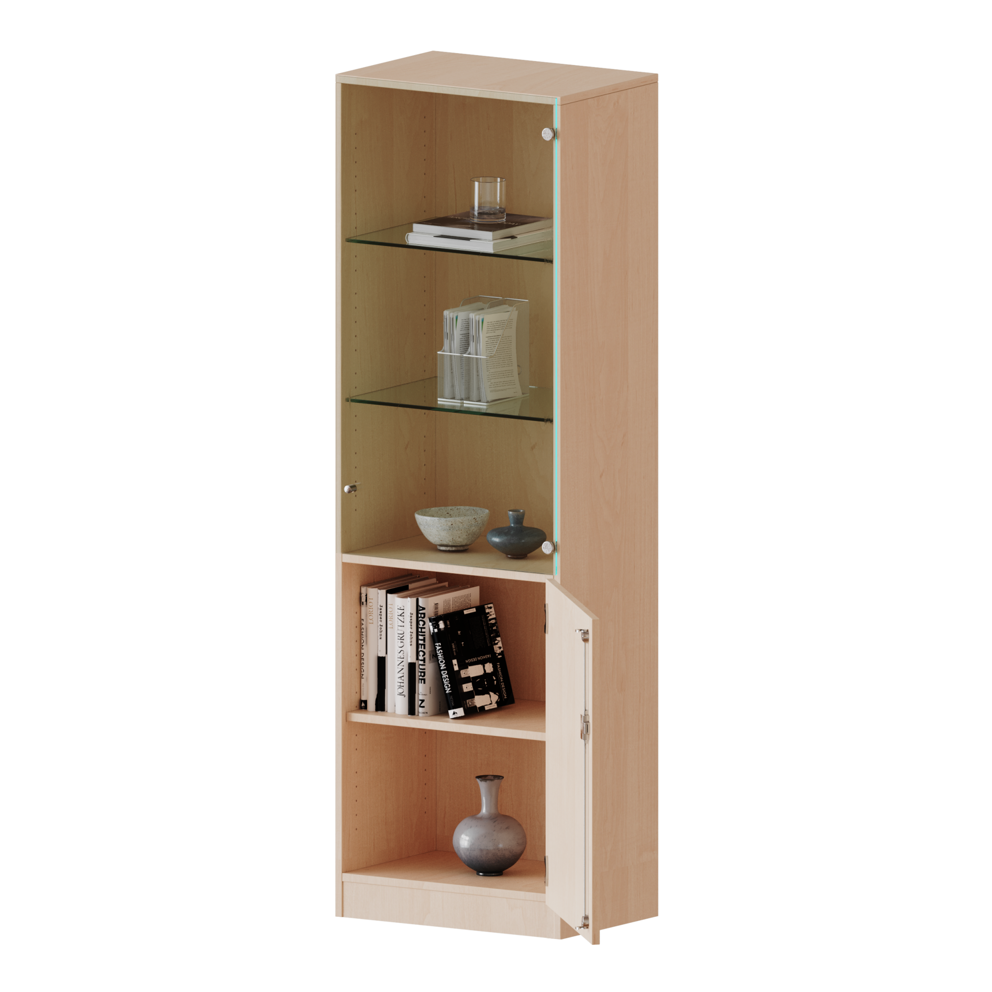 Schrank, 5 Ordnerhöhen, unten Tür (2 OH), oben Vitrinentür (3 OH) - Serie evo180