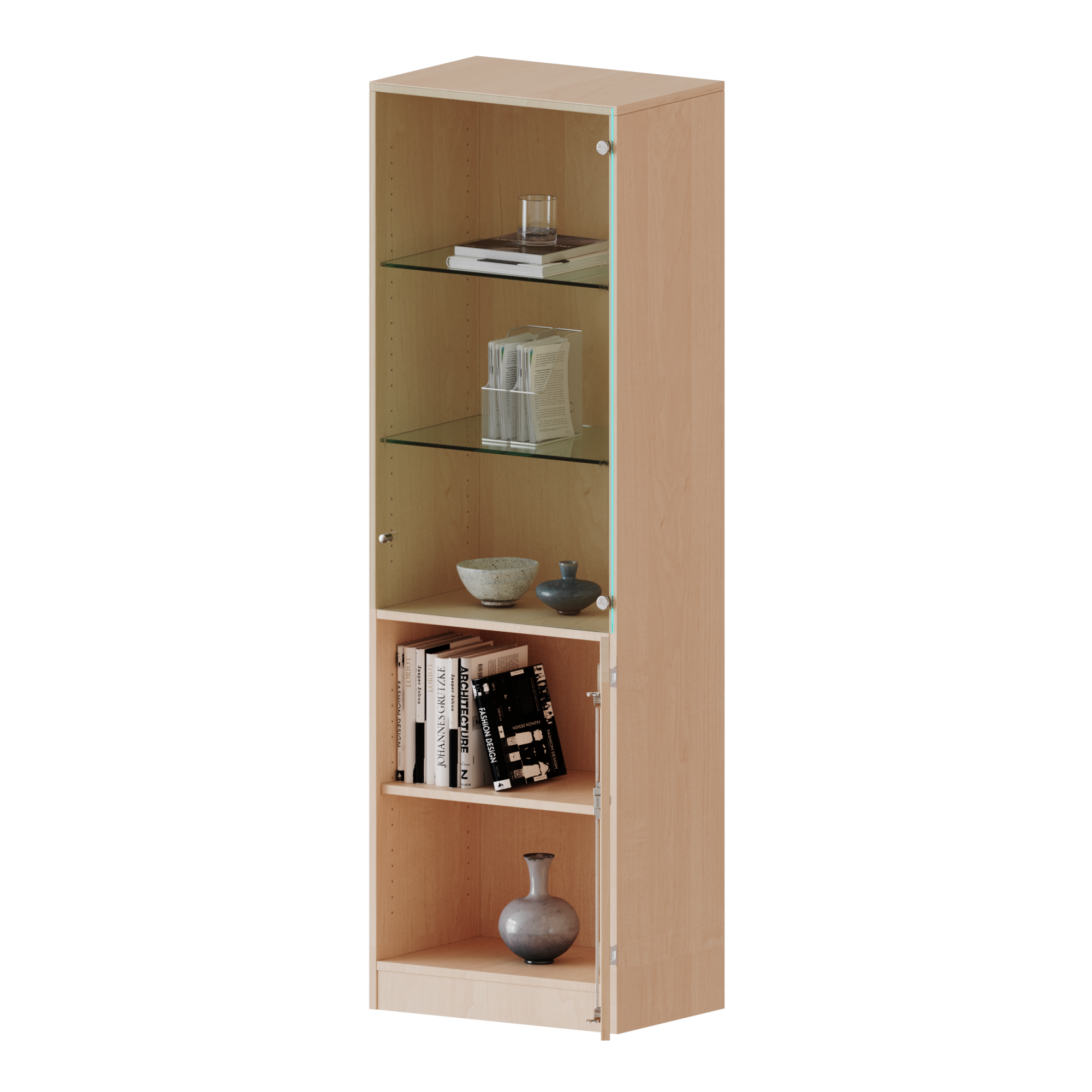 5 Ordnerhöhen, unten Tür (3 OH), oben Vitrinentür (2 OH) - Serie evo180