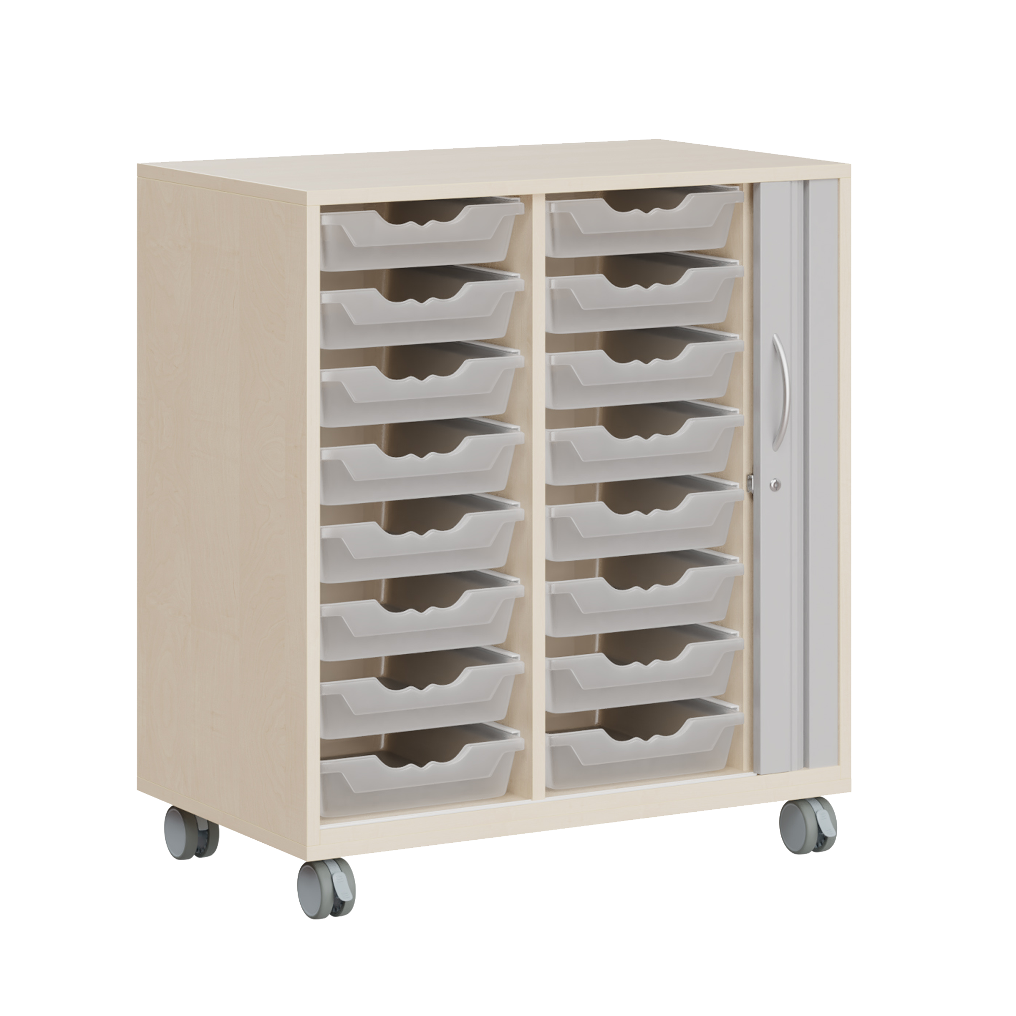 Ergo Tray Sideboard 2-reihig mit Rolladentüren, mit hohen oder flachen Ergo Tray Boxen