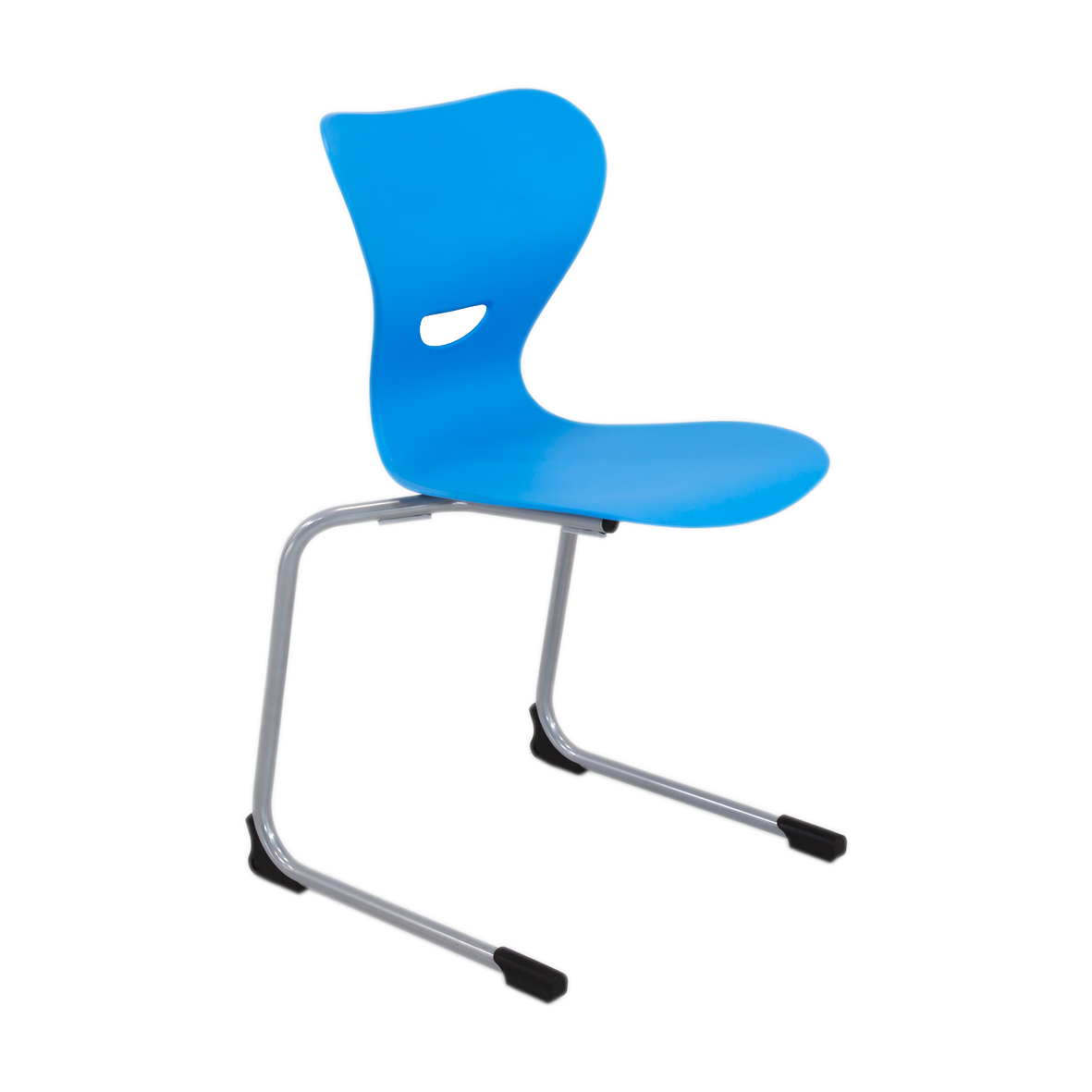 Stapelbarer Freischwinger Schülerstuhl mit ergonomisch geformter Kunststoff Sitzschale, mit Griffloch