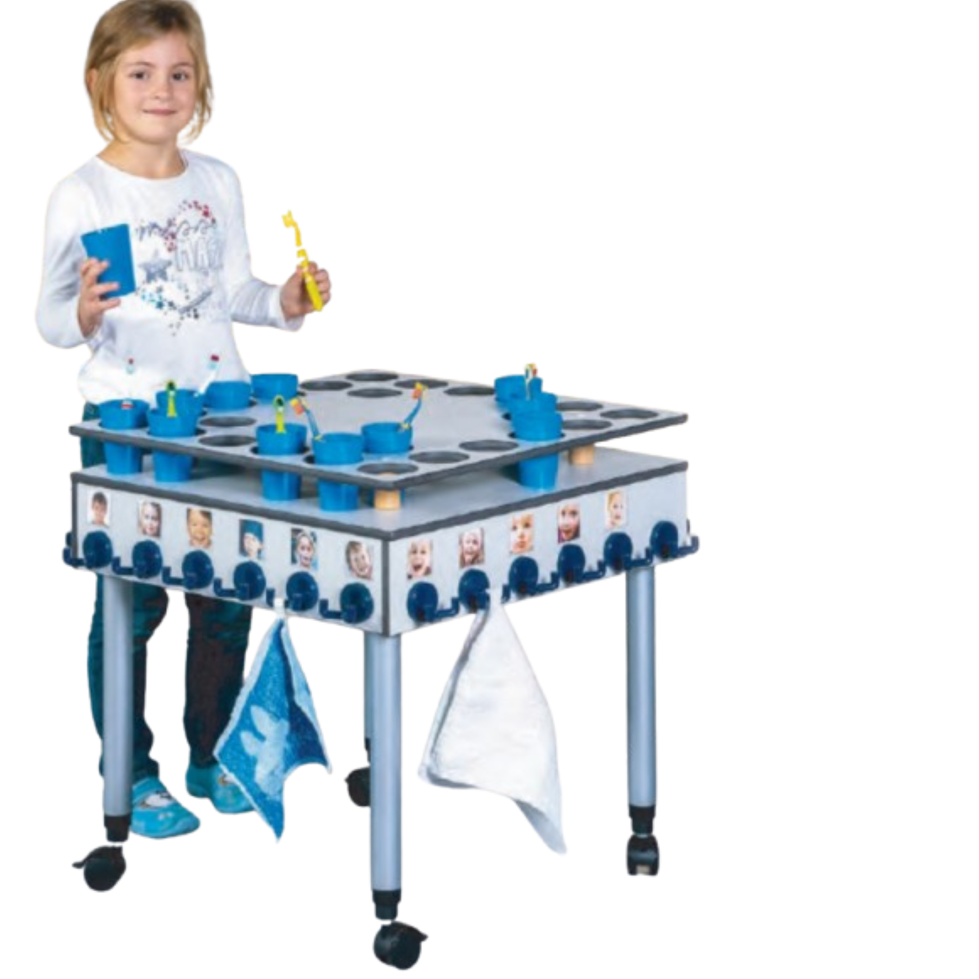 Zahnputzbecherwagen mit Doppelhaken, für 24 Kinder